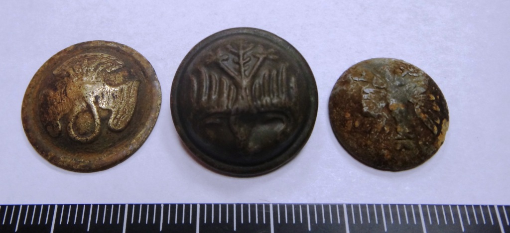 Вот с лета пуговки лежат. 1) Пуговка копейкиных 1 сорт. Где на мундире применялась данная пуговка и каких годов? 2)Зеленая пуговка имеется буковка Л на обороте. Определите! Спасибо всем кто отзовется: