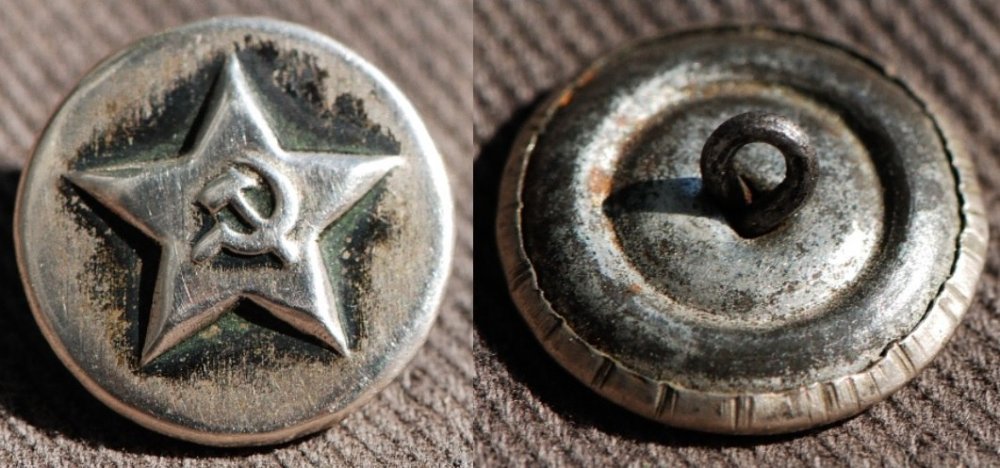 Пуговица выкопана со дна блиндажа, среди кучи нем. трепья и хабора. 100% вариант.