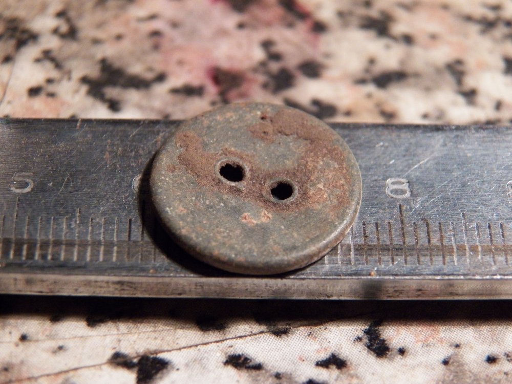 Ось такі гудзички, основа мідна, кілечка металеві, одна інкрустована перламутром інша кольоровим склом Можливо хтось розповість про них, крім того, що цивільні 19 ст