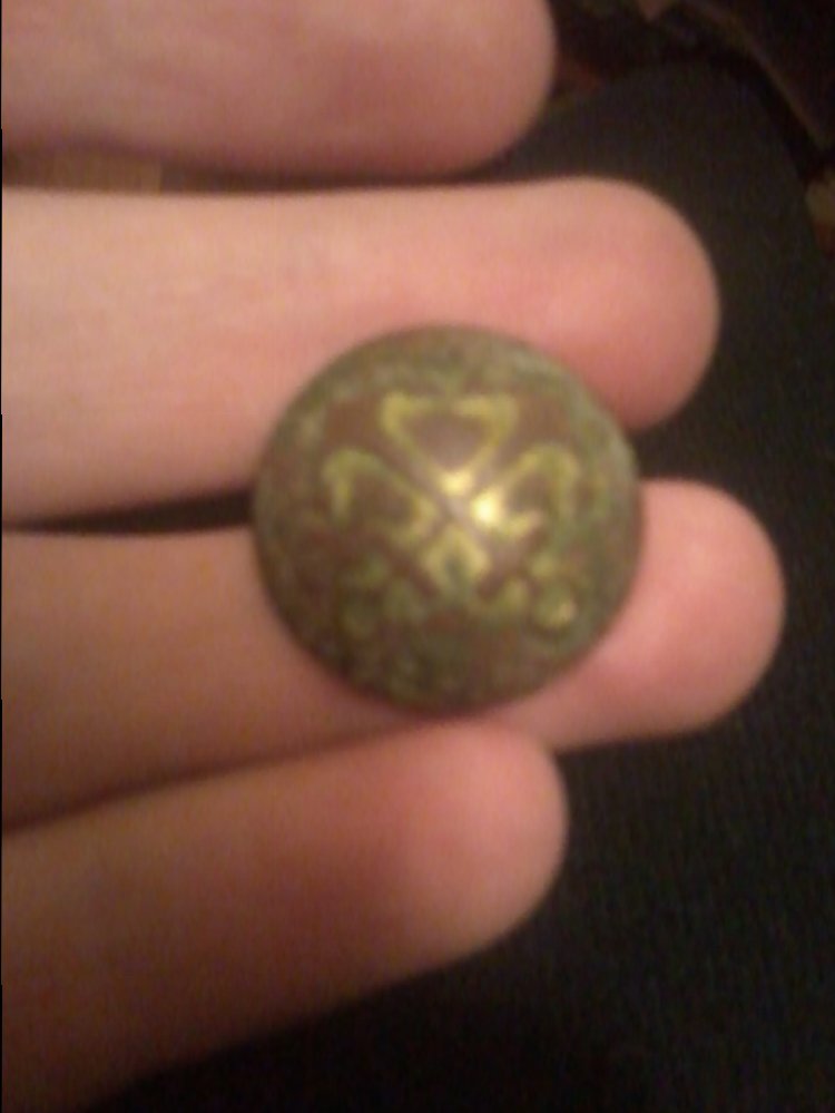Всім привіт. Христос народився!!! Цікавить якого періоду гудзик, думаю в районі 19ст, може хтось підкаже точно Діметр 20мм, метал жовтий але важкий, швидше за все оловяниста бронза, без надписів чи клейм