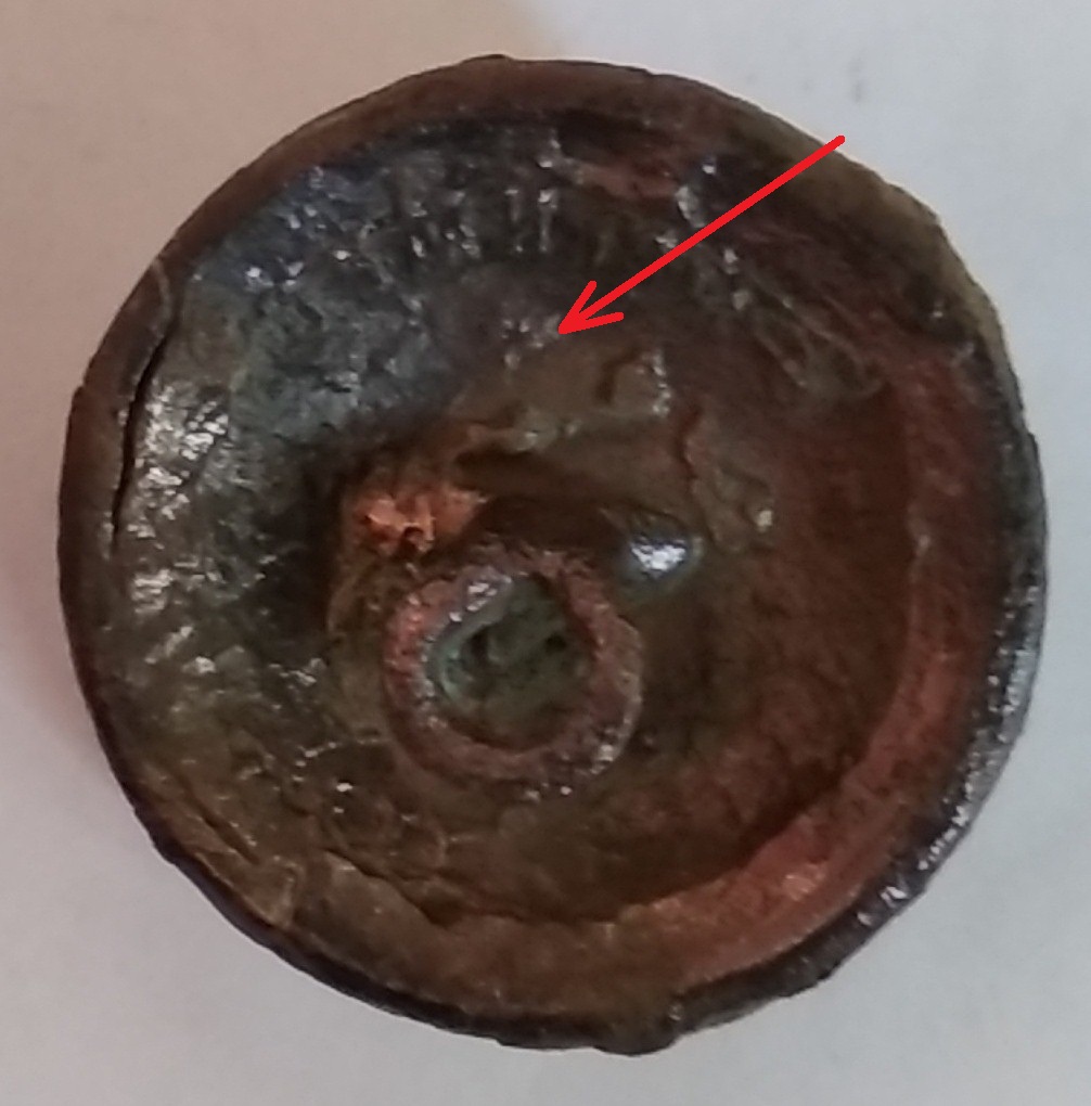 Доброго дня! Бывшая пуговица почтово-телеграфного ведомства (судя по остаткам изображения почтового рожка и перекрещенных молний) выскочила на месте бывшей почтовой станции на трассе бывшего почтового тракта. На обороте отчётливо читаются в штампе изготовителя буквы Ш...МИ... - видимо, ШУМИЛОВ. Но привлекает внимание отчётливый оттиск 6-конечной звезды - на снимке показана стрелкой, не очень заметно (именно мини-звезда Давида, а не фигурная звёздообразная снежинка). Этот значок имеет отношение именно к иудейской символике или просто какой-то типовой знак при производстве?