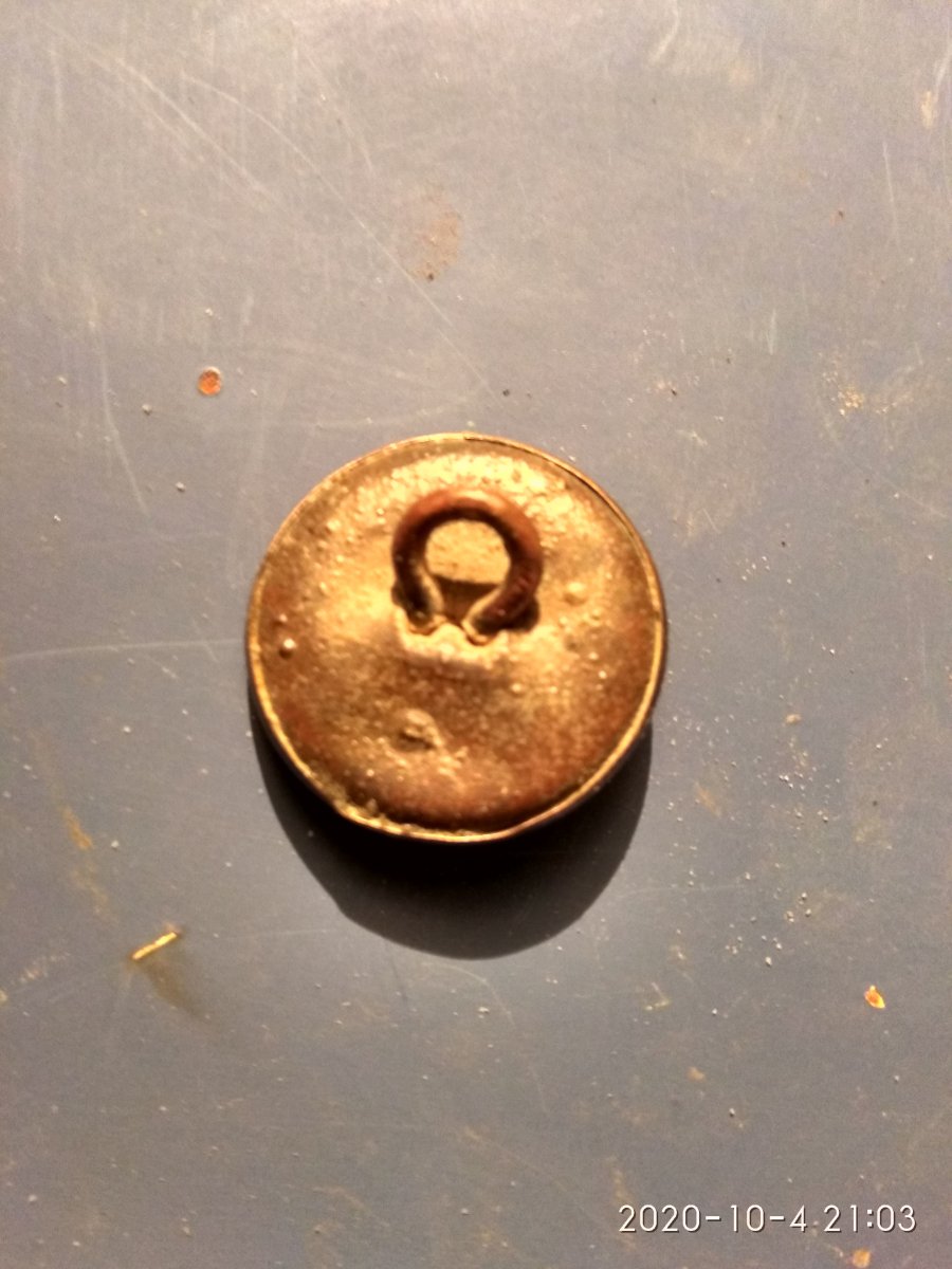 Спасибо. Это самодел или фабричное производство? Могло ли быть на ней какое-то покрытие или так было изначально? Ещё пуговица - производит впечатление довольно недавнего периода, похоже на современный сплав с покрытием. Вот только орнамент с пятиконечными звёздами - имела отношение к форменной одежде? Вряд ли...