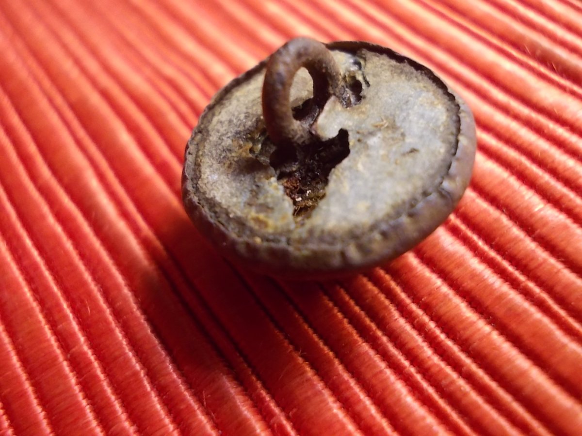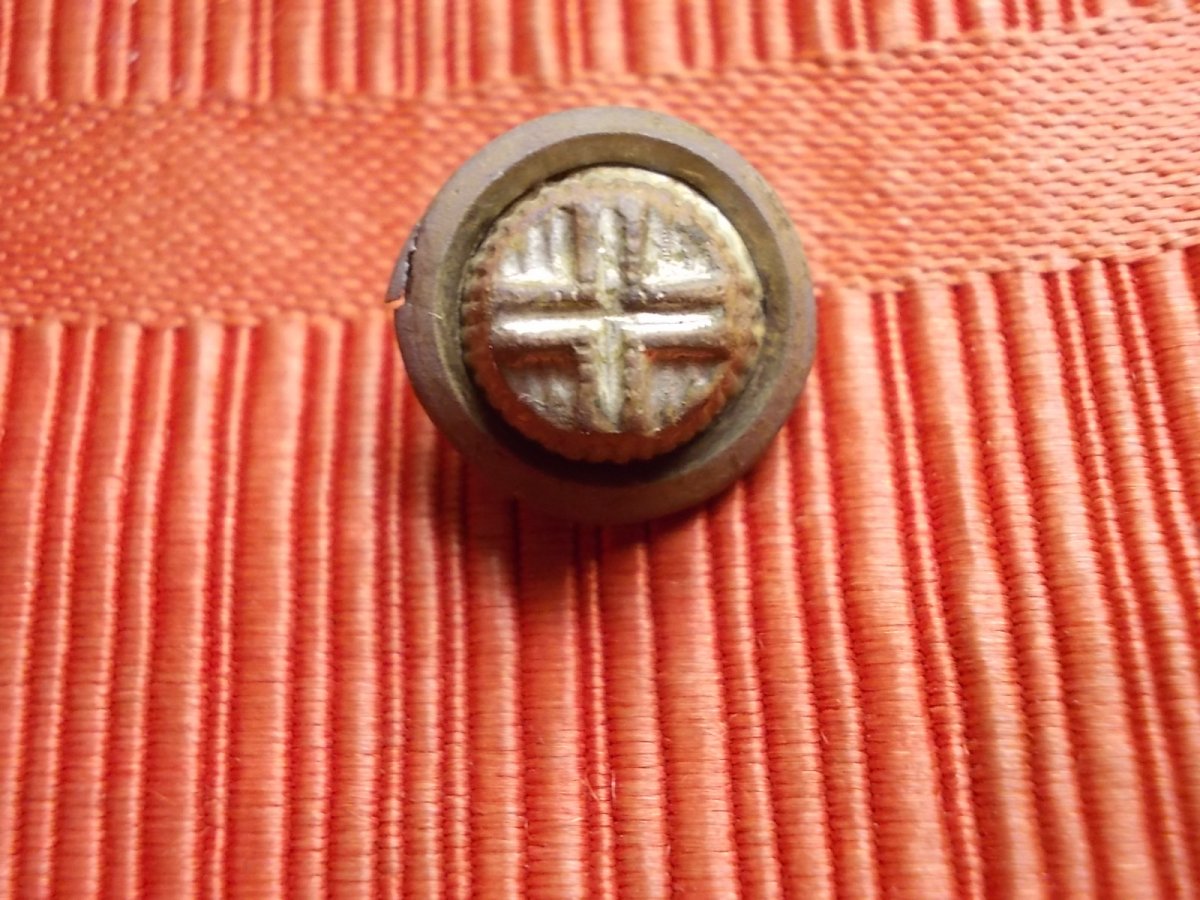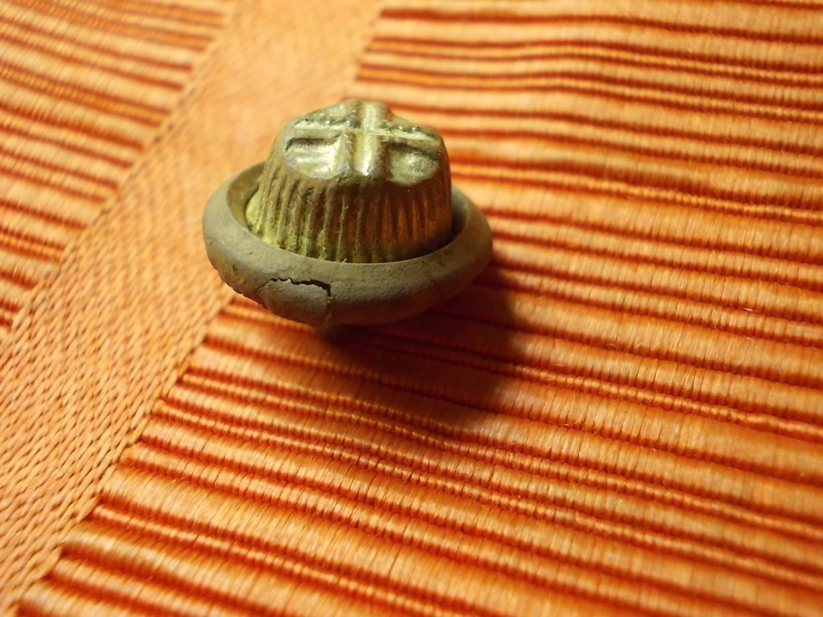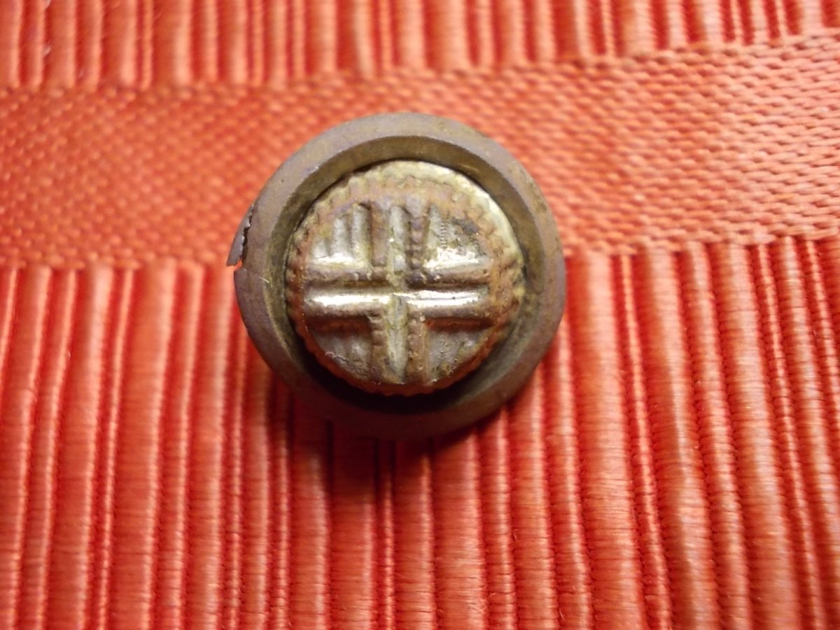 Приветствую всех, просьба определить маленькую пуговку, диаметр -13 мм. Крестик в средине, остатки посеребрения. Сопутка - проколка люльки, монетки Александр 2