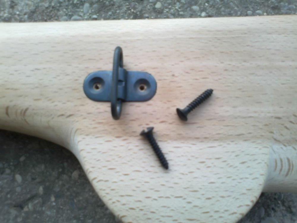 Повезло с винтами, выкрутил из старых окон (с запасом) и зачернил. Поставил антабку на место. Выдолбил посадочное место поставил антабку, просверлил отверстия под винты, смазал резьбу винтов солидолом и закрутил.