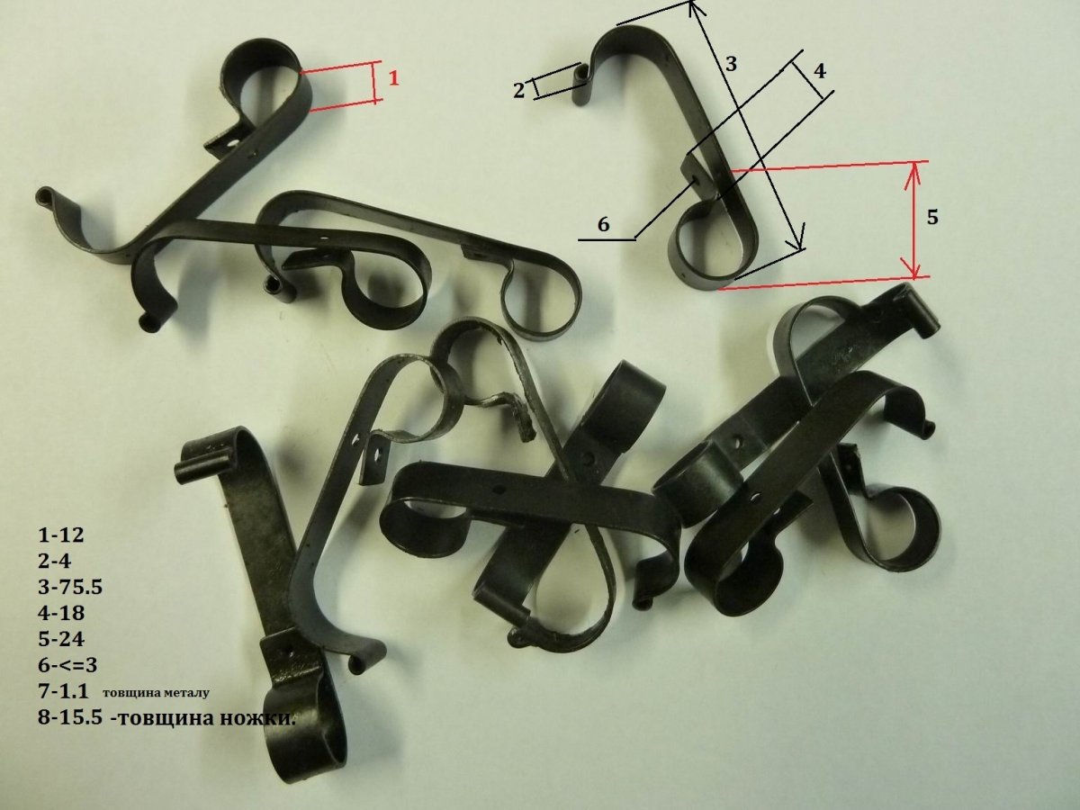 Фиксатор сошек. На схеме фиксатора обратите внимание что размер указан в левом нижнем углу !!!. На детали только номер размера а не размер. (сам один рас ошибся, пришлось переделывать) Делал из хорошего сталистого листа, предварительно нагрел (не хотел гнуться в нужную форму). Заклёпка из гвоздя 3 мм, точил на дрели. Маленький загиб делал на электроде 2 мм. Кольцо для ножки гнул на водопроводной трубе 16мм. Отверстие под заклёпку должно быть чуть больше 3 мм, распилил чуть надфилем, где то на 3,2 мм. Нагрел и опустил в отработанное автомобильное масло. Перед закалкой кольцо под ножку чуть разогнул на половину, чтоб потом хорошо оделось на ножку. (не знал как поведёт себя после закалки металл). В последствии оказалось что металл хоть и пружный но поддаётся згибу и разгибу. Потом будет стянут заклёпкой и проблем не вижу.