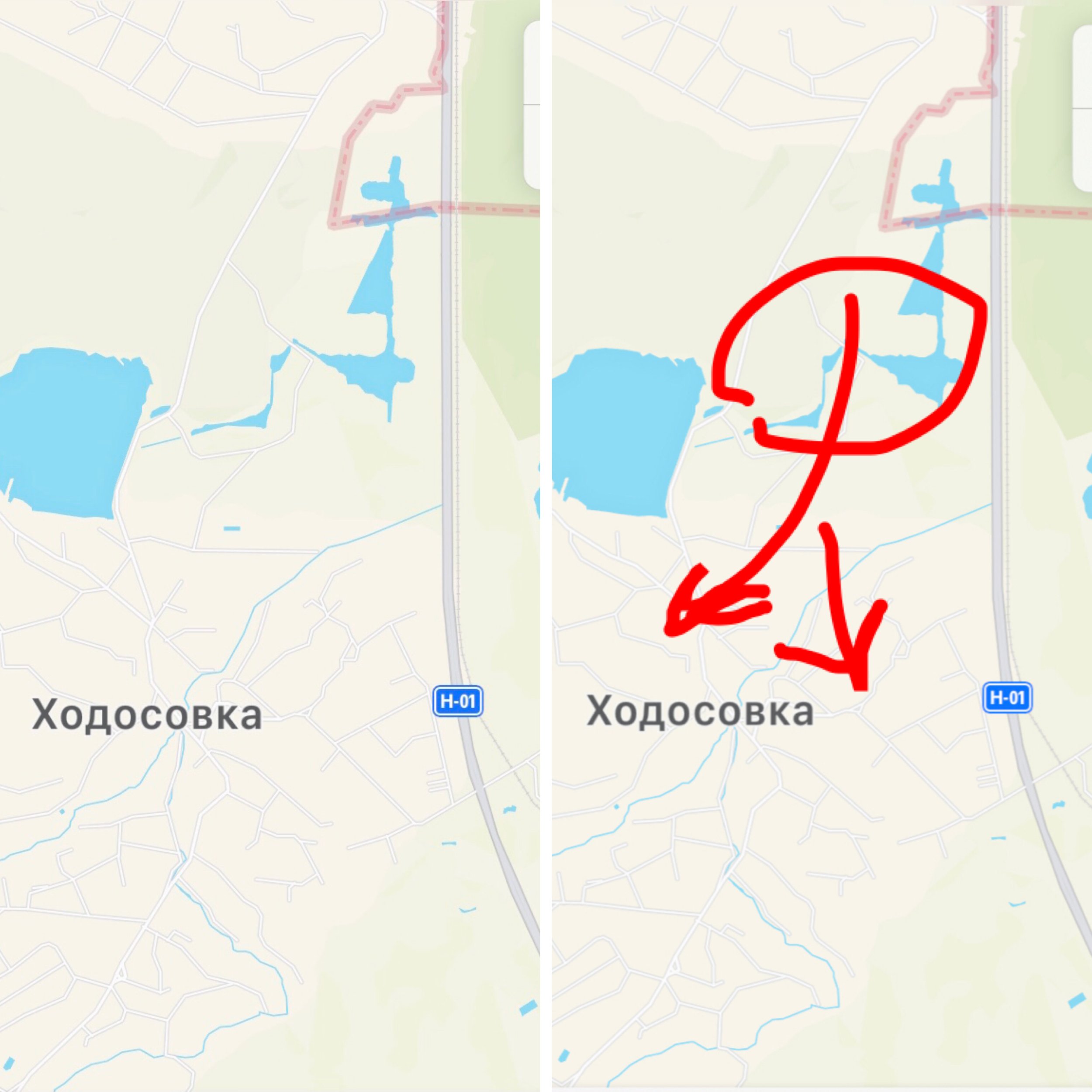 Iмовiрно, це все могло вiдбуватись в двох мiсцыха(обведено червоним). 1. Там, дiйсно, було болото, поки й@банi новоукраiнськi товстосуми не поклали на цю мiсцину свое око i в 2000-x не вимили земснарядами озеро та почали будувати там котеджi, попутно спотворюючи ландшафт та вирубуючи прилеглий лiс(ну а як же без цього). Ново-Обухiвськоi траси в 1941 роцi не iснувало, вона була побудована в серединi 80-х коли будували Трипiльську ТЕС. Мiсцина в 1941 роцi була досить глуха. Що б дала атака в цьому мiсцi - я ХЗ. Солдати РСЧА повиннi були, зайнявши тодiшнi споруди хутора Нове Життя, при подальшому русi в бiк основноi частини с. Ходосiвка впертися у висоти - прямо на пiвдень курган, пiвденно-захiднiше меньшi по висотi, але теж висоти. 2. Прямо через болото яке було на мiсцi майбутнього озера з надiею перетнути нинiшню вулицю Набережну? Щоб знову таки впертися у висоти? Наскiльки менi вiдомо - в багатьох мiсцях на пiвденнiй частинi КIУРа передпiлля було здане без бою.( наприклад через село Пiдгiрцi Вермахт пройшов без бою, гооодище мiж Ходосiверю та Пiдгiрцями теж нiхто не обороняв ). Хоч, iмхо, там були рубежi зручнi для оборони. Iмовiрно, тi хто вiдступали, вважали що вiдсидяться та вiдпочинуть за спорудами КIУРа , а тi кого прислали укомплектувати КIУР вважали що тi хто вiдступають пiдсилять iх позицii. Ну i всi разом надiялись на Сталiна, Кирпоноса i тд. , а може кляли про себе «краснопузих» бажаючи iм смертi. Про низьку мотивацiю середньостатистичного червоноармiйця в лiтнiх боях 1941 року хто тiльки не писав. Так само, можна було закрiпившись на захiдних околицях Ходосiвки оборонятись вiд колон Вермахту що рухались з боку Креничiв та Пiдгiрцiв. Замiсть цього Ходосiвку здали а потiм почали героiчно ii НАМАГАТИСЬ вiдбивати. Нiчого вони не вiдбили, як ми тепер знаем, скорiш усього це була розвiдка боем. Але цiкаво почитати чим там закiнчилось. Напевно нашинкували червоноармiйцiв, та й по тому. Баби ще нарожають.