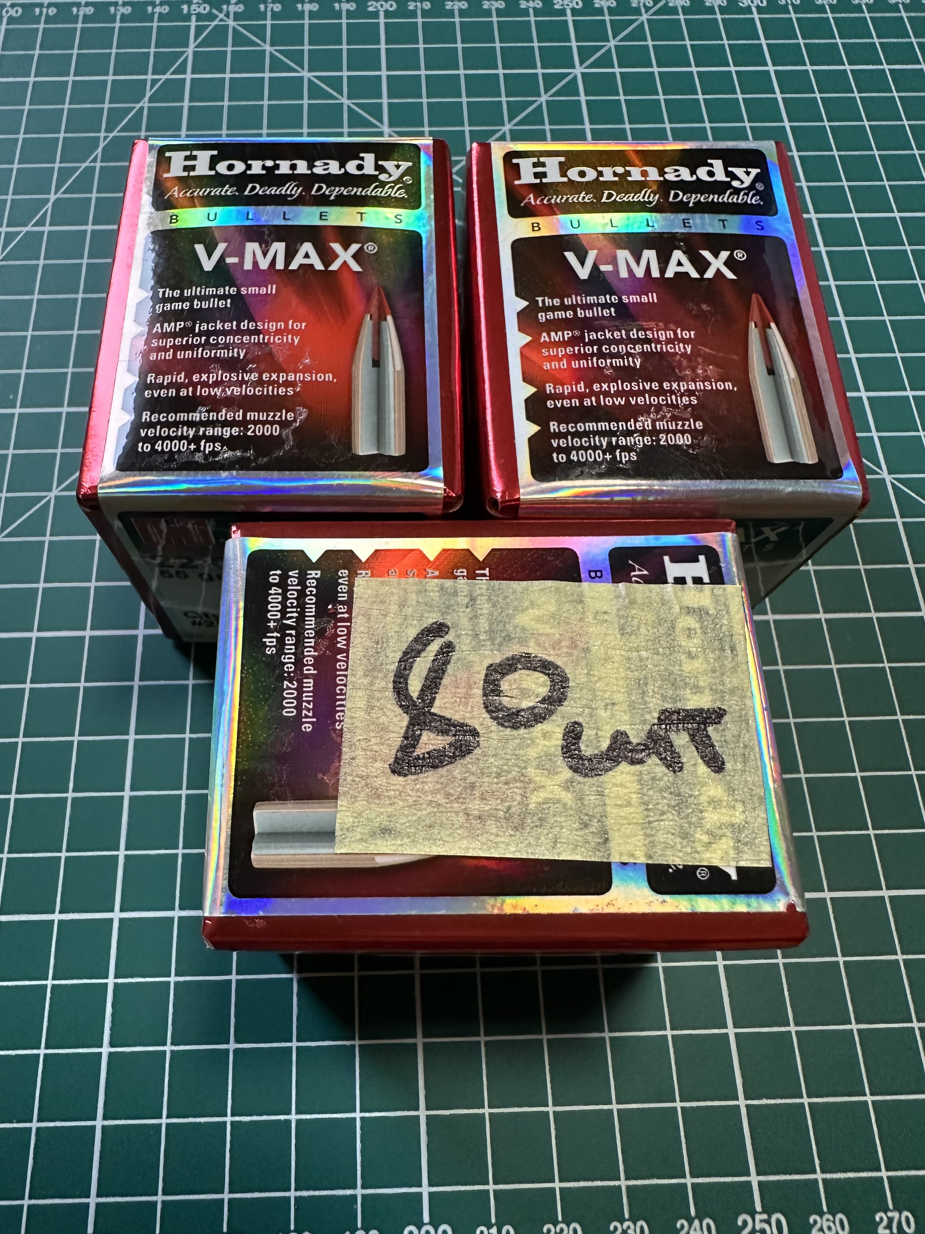 1.Hornady V-MAX 55gr - 280шт. -3500гр 2.Hornady BTHP 75gr - 48шт. -720гр 3.Гильзи Federal одностріл (нікельовані) 80шт -продано 0950972877