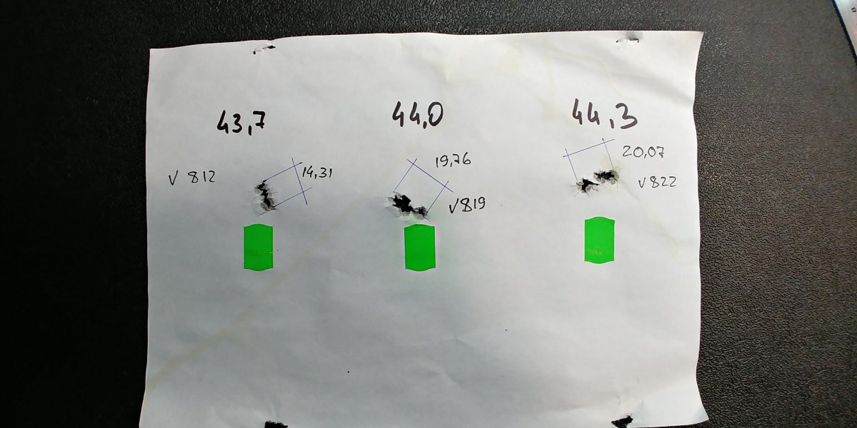 Постреляли вчера с Юлей из двух винтовок. У нее Хова 20’, твист 10’. Хрон забыл, думал ребята со своими будут. Навеска 43.7, COl мой. из четырех серий по 3, лучшая чють более минуты... Винтовка на глазах, на своем патроне стабильно собирает — 0.5 Моа. Еще раз тому подтверждение, полка в районе 810-815 очень узкая, но кучная. Мои группы те же в коридоре 0.2-0.3 моа.
