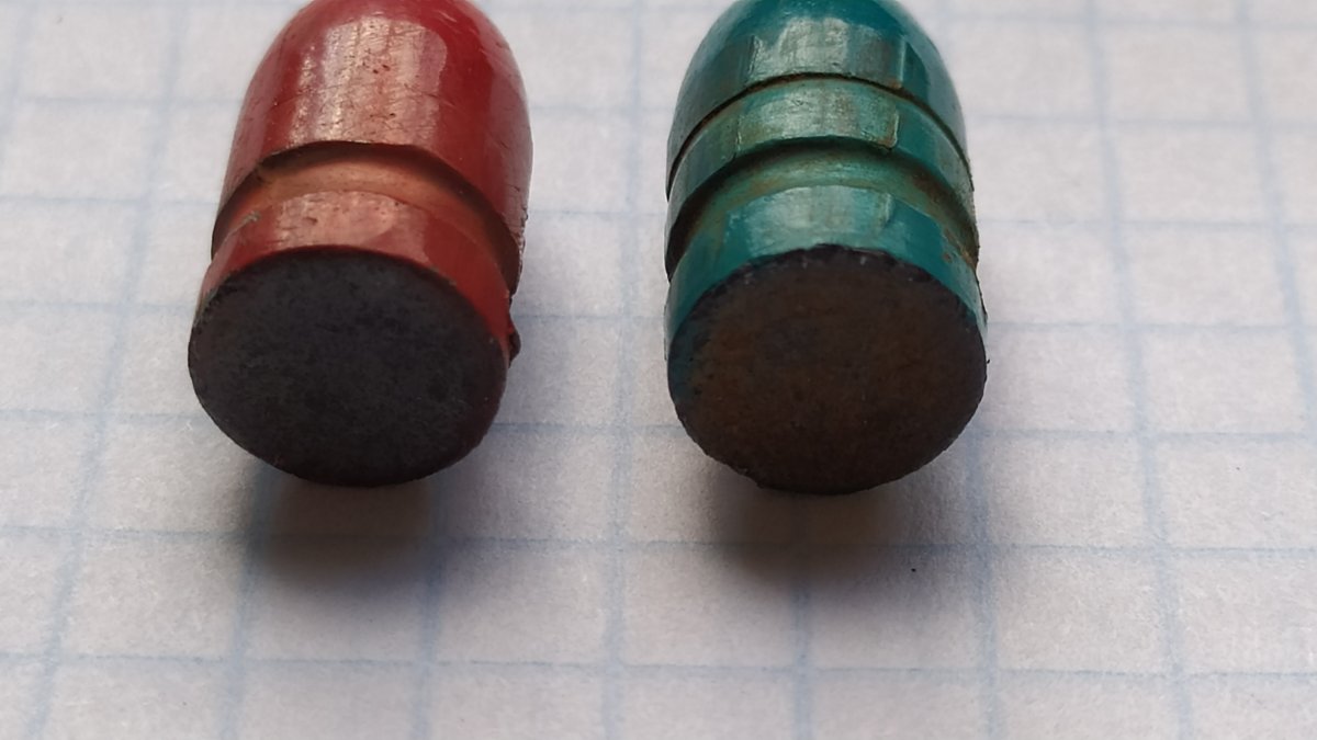 ...наврЯд. Кульки були пофарбовані зразу (до відстрілу, і власне то не фарба, а полімерне покриття), ...бАчиться - не зовсім вдАлий (?) експеримент із відстрілу релоаджених патронів 9 мм ПАРА "кастомерськими кулями" (як на мене - револьверними .38 S&W Спешиал) 1. на зеленій кульці бачаться 6 нарізів (більш-менш) стандартного 9-мм ствола, як наприклад, німецький Вальтер Р-38 (Р-1/Р-4) або що... 2. а на червоній - правосторонні полігональні нарізи типу "Глок-17" ... З.Ы. ...ось як виглядають ті кулі при продажі і заряджанні - див фото : З.Ы. З.Ы. ...доречі - для тренувальної стрільби можливо використовувати ваЖку кулю при істотно занИженій наважці пороху - автоматика перезарЯджання буде працювати... (про що свідчить ФАСОЧКА на зеленій кульці відвальцювання напівпорожньої гільзи ?? Фото.3)