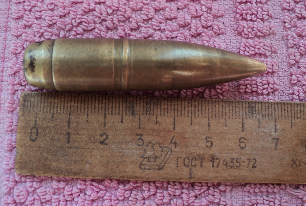 Добрый день. Попала на аукционе соседнего ресурса такая пуля, хотел бы узнать к какому патрону пуля. Диаметр тела пули 14,5 мм. выступающий поясок 15 мм. Длина 69 мм. Материал сталь покрытая бронзой, сзади на две трети пустая.