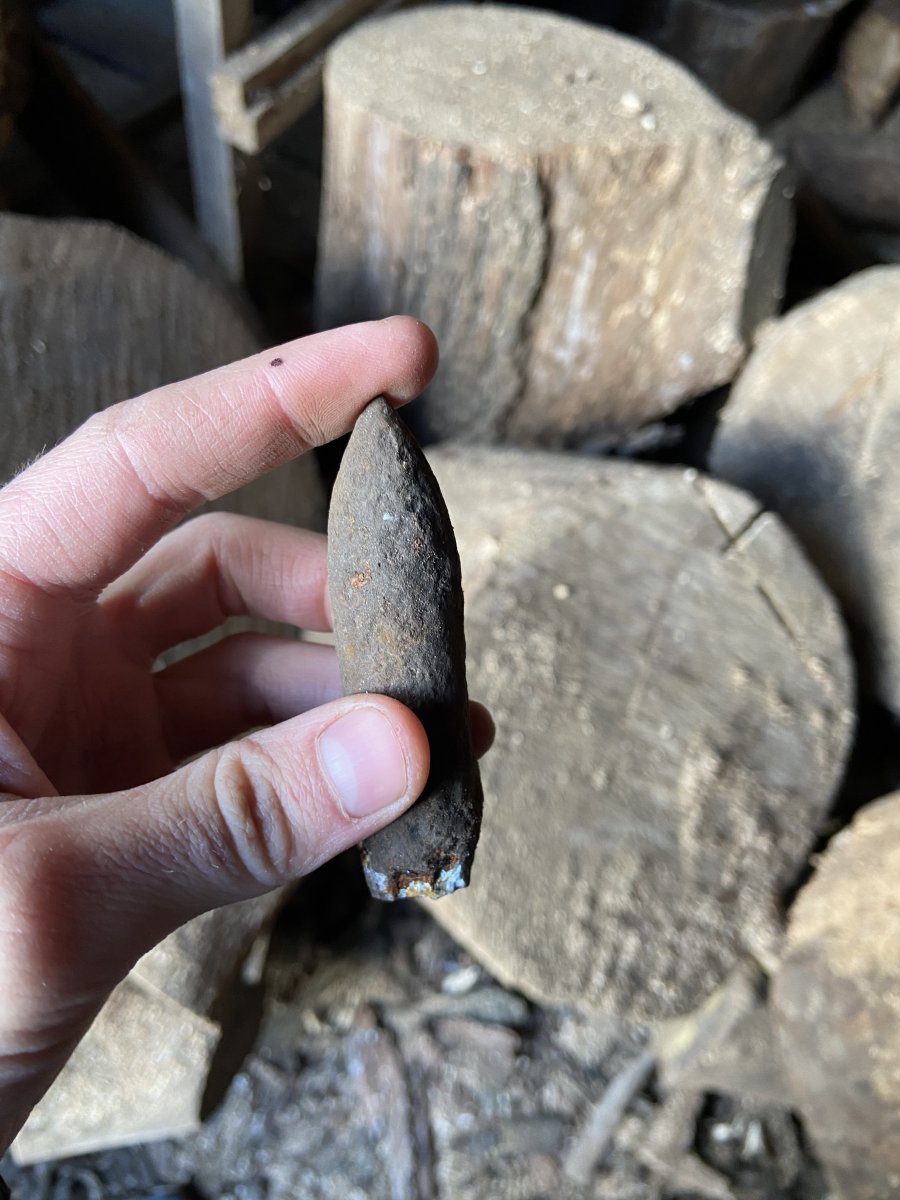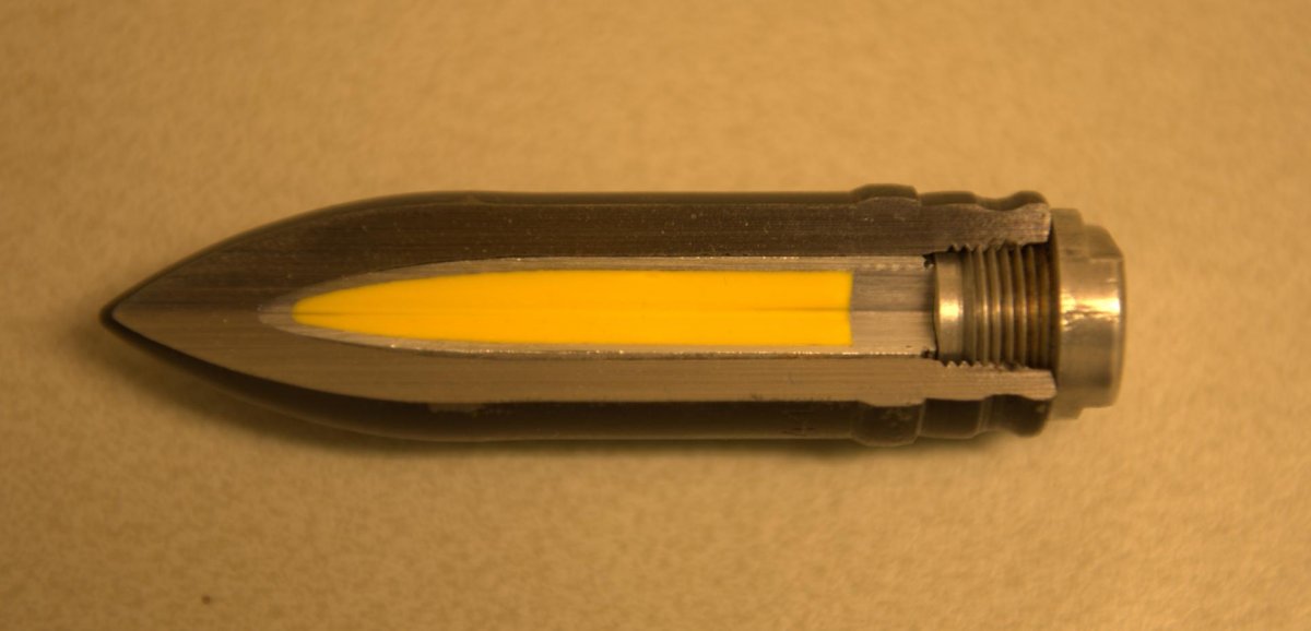 MG 151-20х82(Герм.) Я бачу 20мм снаряд,в середині може бути що завгодно :фосфор,вибухівка,повітря і т.д. і т.п. З низу або пробка або підривач, все гниле ,маркування не видно.