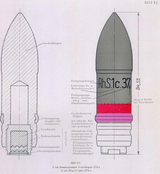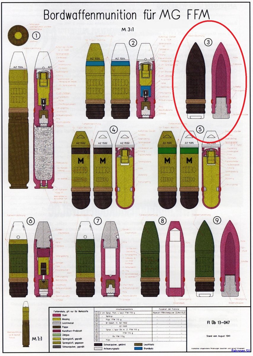 Ой ли? Хотя у меня даное фото тоже в разделе авиационного боеприпаса, но я вот смотрю на него, смотрю....И задаю сам себе вопрос, а верно ли он "помечен" как снаряд к боеприпасу от MG FF (MaschinenGewehr FlügelFest)? В номенклатуре выстрелов к данной пушке именного ТАКОГО снаряда не нахожу. Может мало информации у меня или я не прав??? Поправьте. Возможно несколько вариантов. Надо ТОЧНО ЗАМЕРЯТЬ длину или видеть маркировку на корпусе находки и его окраску, но это не про Вашу находку. Разница между "боевым" и практическим менее 1 МИЛЛИМЕТРА! Без маркировки понять бронебойно-зажигательно-трассирующий или бронебойно-трассирующий сейчас вообще не реально. Следовательно исхожу из самого худшего варианта - бронебойно-трассирующий, причем с самоликвидацией через трассер (т.е. ПРОТИВОПОКАЗАН ОТКРЫТЫЙ ОГОНЬ) и дома он нах не нужен! Снаряд к выстрелам от немецких либо зенитного орудия 2cm Flak 30/38, либо танкового орудия KwK30 или их модификаций. Далее. Это снаряд (а не пуля!) к выстрелу 20x138B Rheinmetall P/S ИМХО