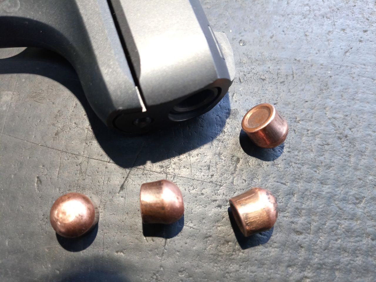 это фоточка пуль .380 auto (9х17) после попадания в пулеулавливатель в виде транспортёрной ленты, которую эта пуля (на расстоянии 50 метров) не пробивает.