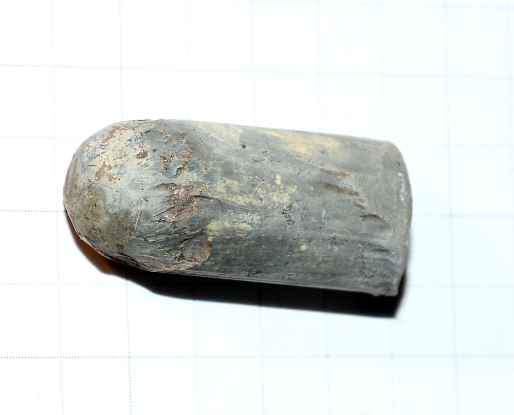 Здравствуйте, нашел такой свинцовый цилиндрик, как по мне похоже, на пулю, длинна-25мм., диаметр-10,5мм., сопутка-КР, что скажите? С уважением.