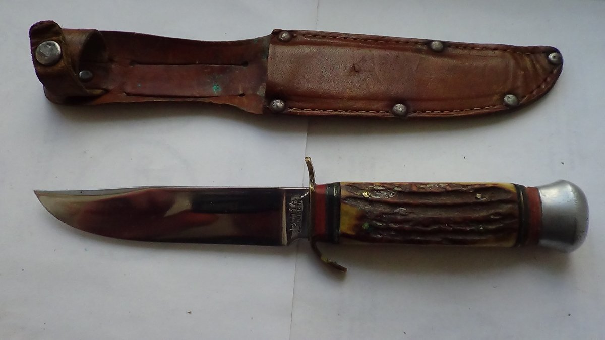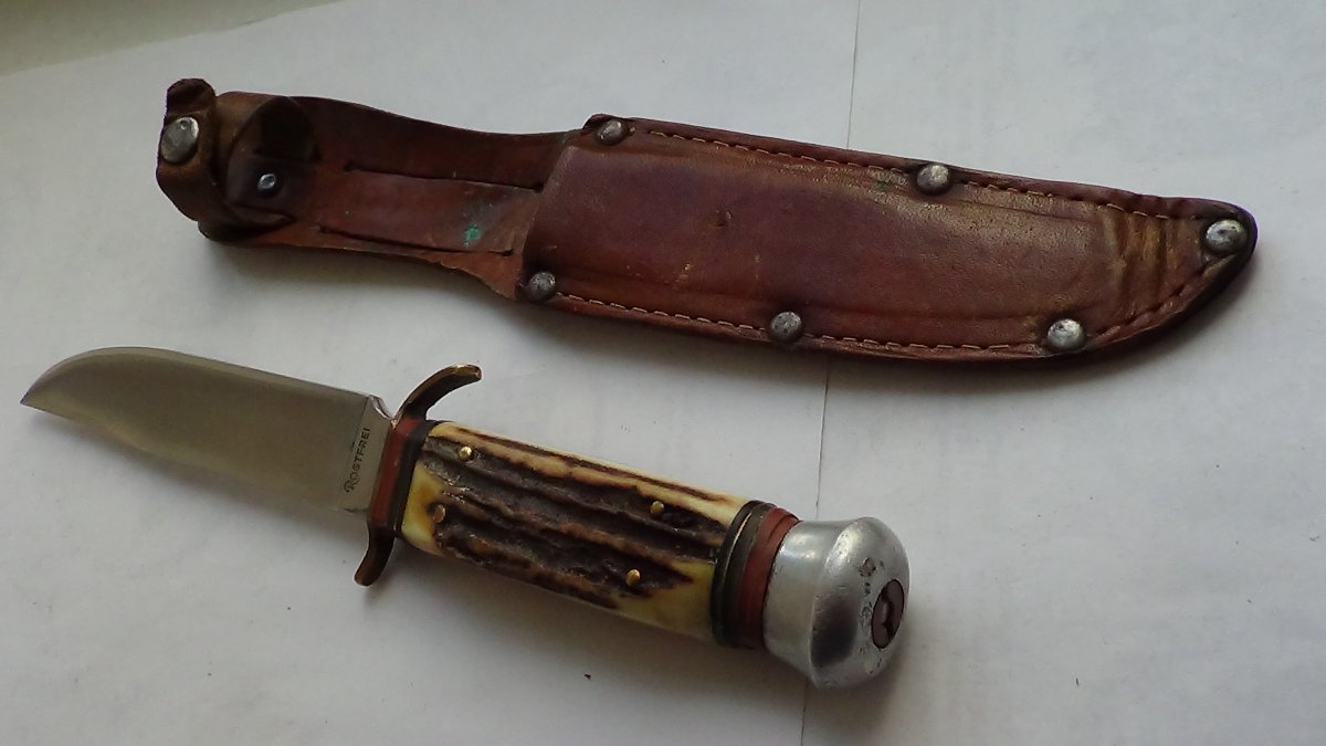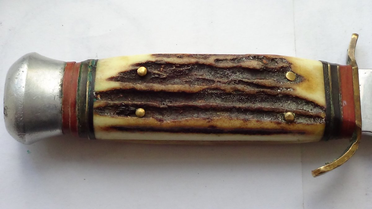 Накладки рукояти-рог. Клинок-нержавейка. Общая длина-21см, клинок-11см, обух-5мм Цена-3350 грн.