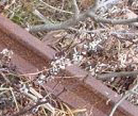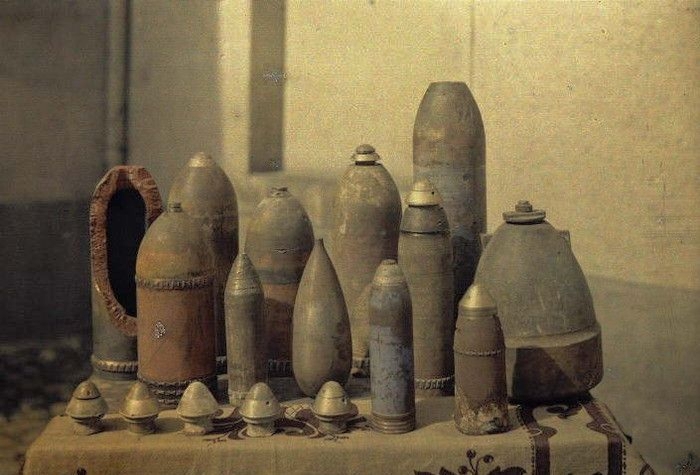 Похоже фото сделано на чермете... В кучу хаотично накиданого жалеза (смотрим на дверную петлю, кусок рельсы и др.) вставили снаряд. Но почему-то мне, несильно нравиться поясок на снаряде (смотрим фото)