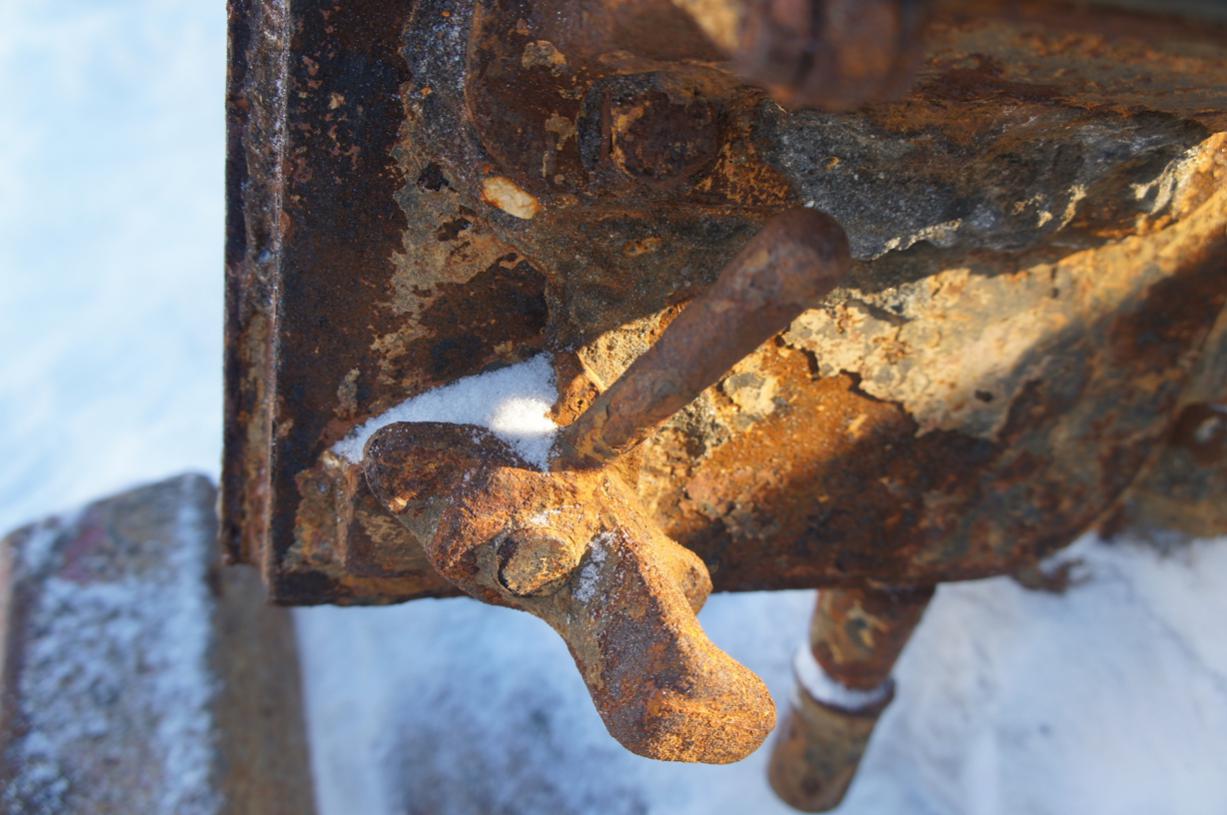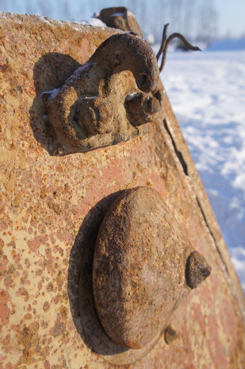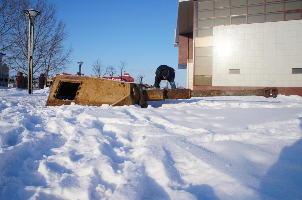 Короче, по сравнению с её состоянием сразу после подъёма, башня немного потеряла вид и начала усиленно обрастать коррозией. Надеюсь конечно, что с потеплением ей займутся. А то получается зачем подняли?:(