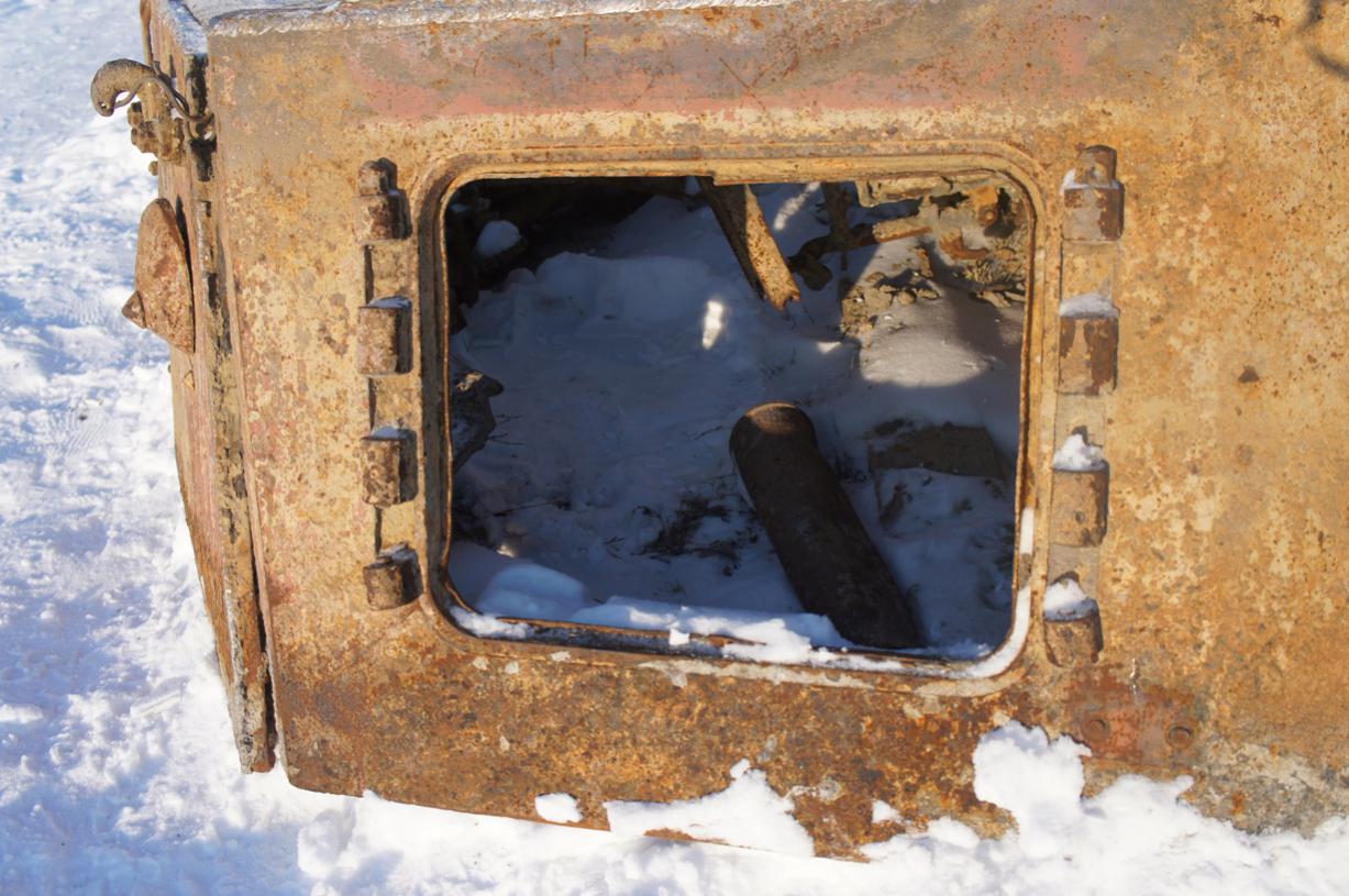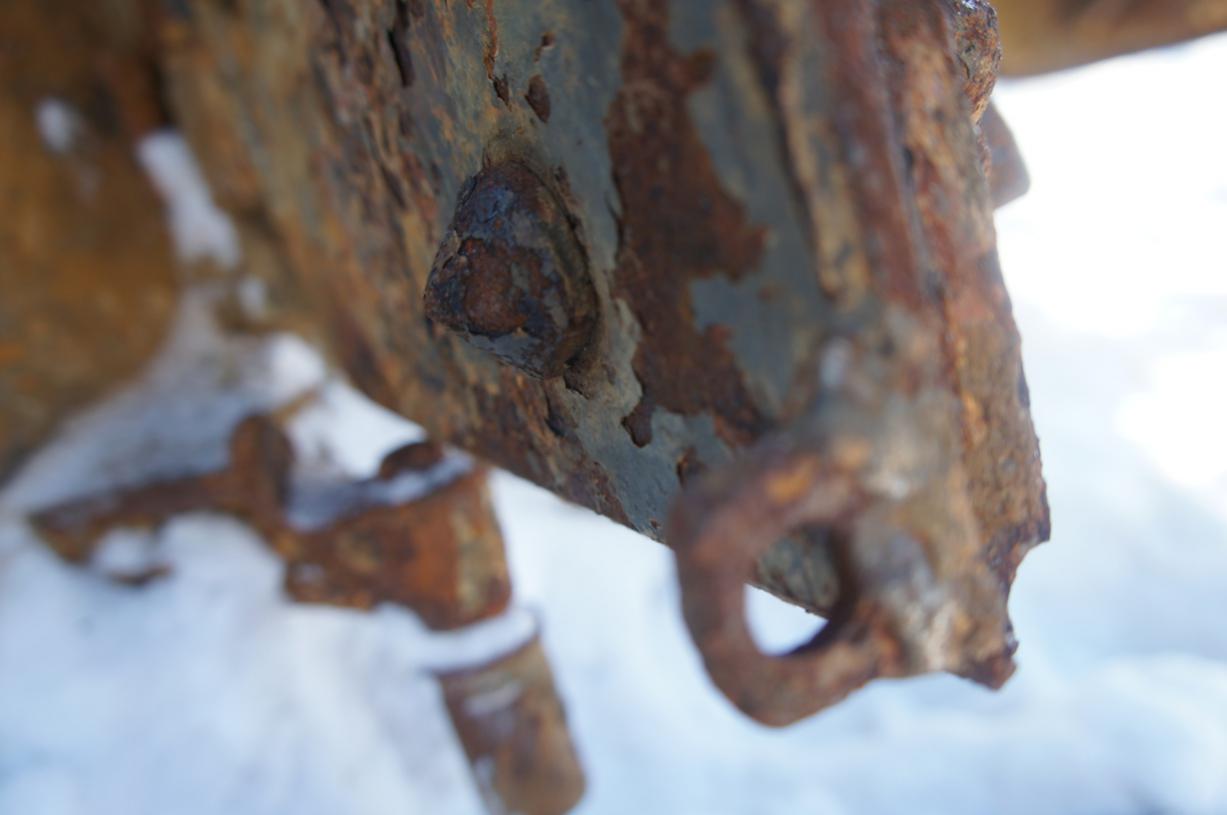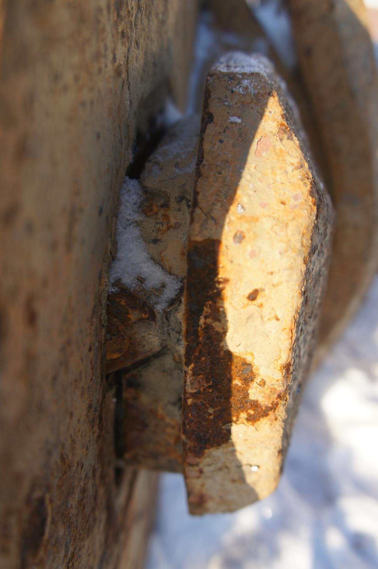 Короче, по сравнению с её состоянием сразу после подъёма, башня немного потеряла вид и начала усиленно обрастать коррозией. Надеюсь конечно, что с потеплением ей займутся. А то получается зачем подняли?:(