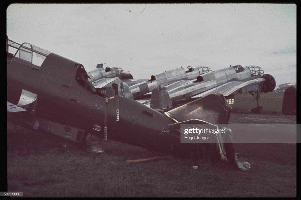 Захваченные немцами недостроенные польские средние бомбардировщики PZL P-37 "Los" на аэродроме в районе Окенце близ Варшавы.