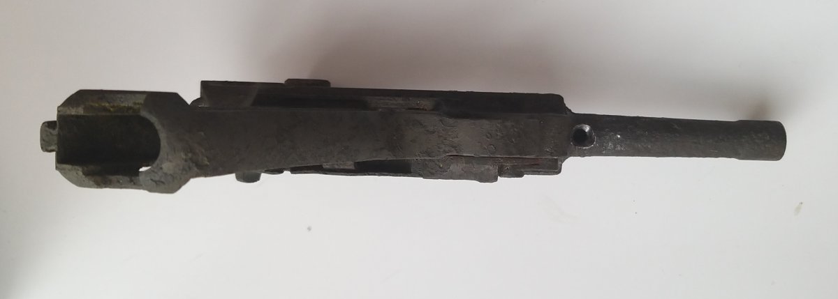 Отверстие не только попало на клейма, номер и размеры канала ствола там были, но и превратило раритет, который по своему состоянию мог уйти за отличную цену, в посредственный исходник для ММГ. Ибо при таком расположении отверстия СХП уже из Люгера не выйдет, к сожалению. И ничего не поправить.