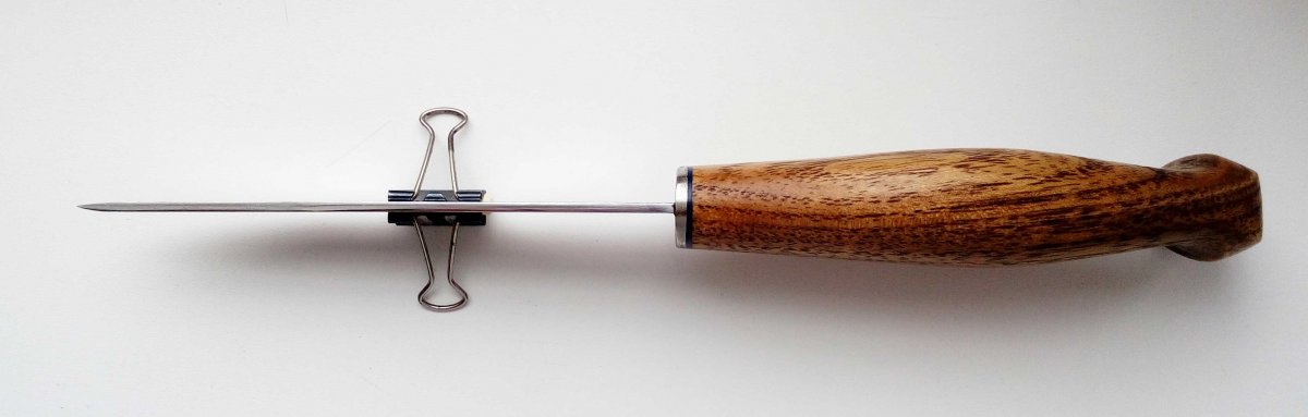 Cт.Р6М5, пила по металлу 2,1 мм , 116 х 115 х 22 мм, больстер из нержавейки и синей фибры, рукоять тонированный ясень. Всадной монтаж. Сведение в 0 мм, с микроподводом. Цена 700 гривен.