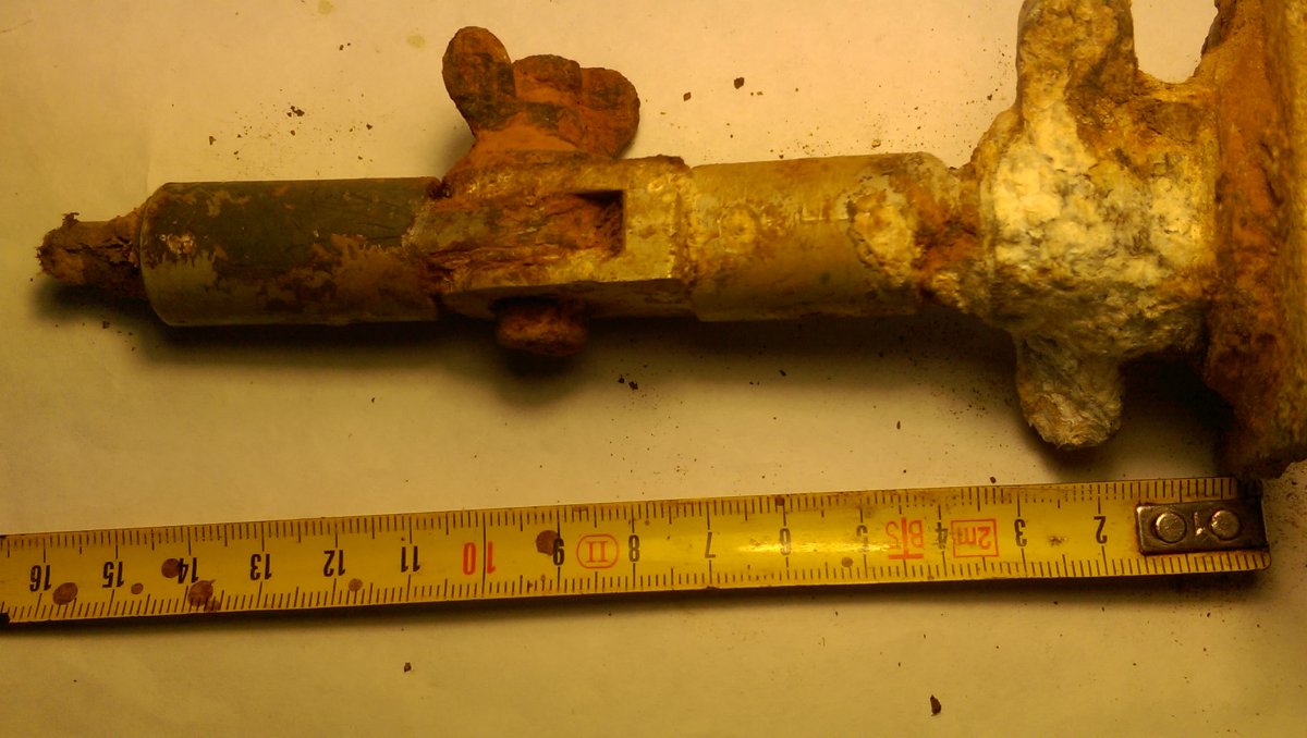 Добрый вечер.Прошу у вас помощи по определению данного предмета.Вблизи блиндажа закопана примерно 80 см.Там же была гильза мосинки и тт.Вероятно что-то по ссср.материал нелатунь и неаллюминий -вес около 10 кг.Всем благодарны за любую информацию С ув