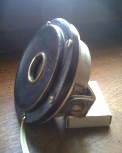 Это телефонный капсюль (или наушник) большого размера, выточенный из алюминия. На задней стенке наушника нанесена надпись "Л.М.ЭРИКСОНЪ и Ко. Петроградъ. 1917 г. Вот ссылка на источник: http://www.rkk-museum.ru/collections/telephones/telephones-1.shtml