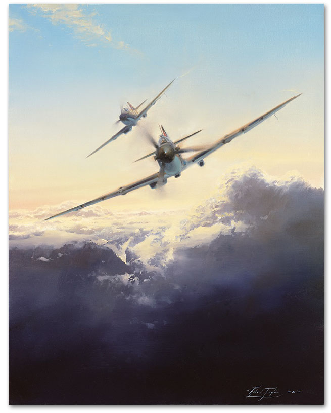 Steven L Heyen 605 Squadron Hurricane flown by Archie McKellar, late 1940. 16.5 X 28 inches. Oil on canvas.