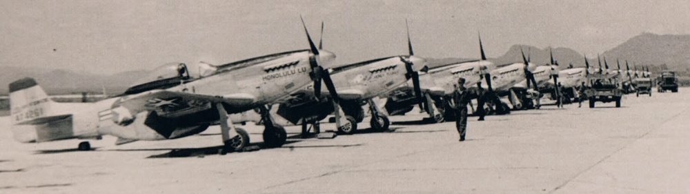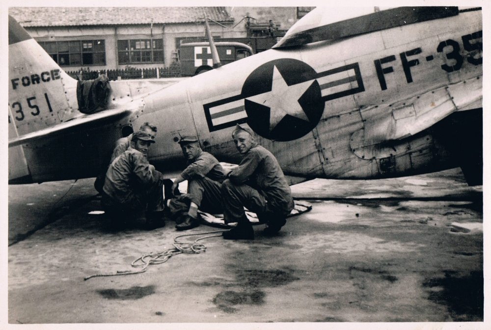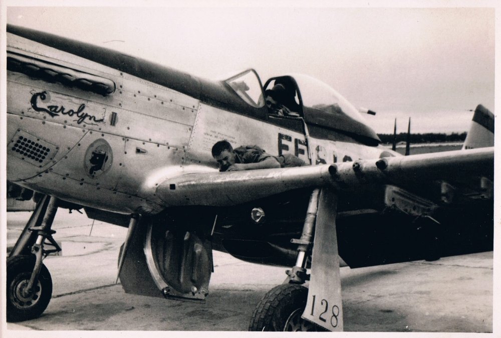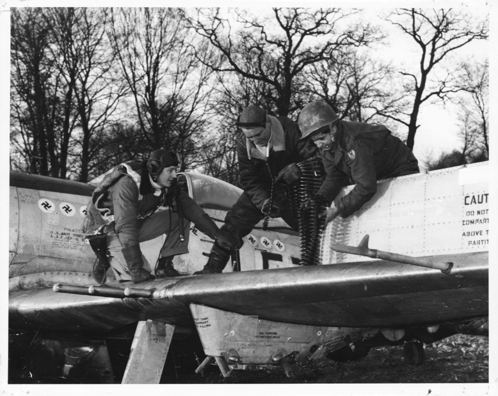 Capt. Don M. Beerbower из Hill City, Minnesota в своём Мустанге Р-51 на одном из аэродромов во Франции отмечено 17 побед