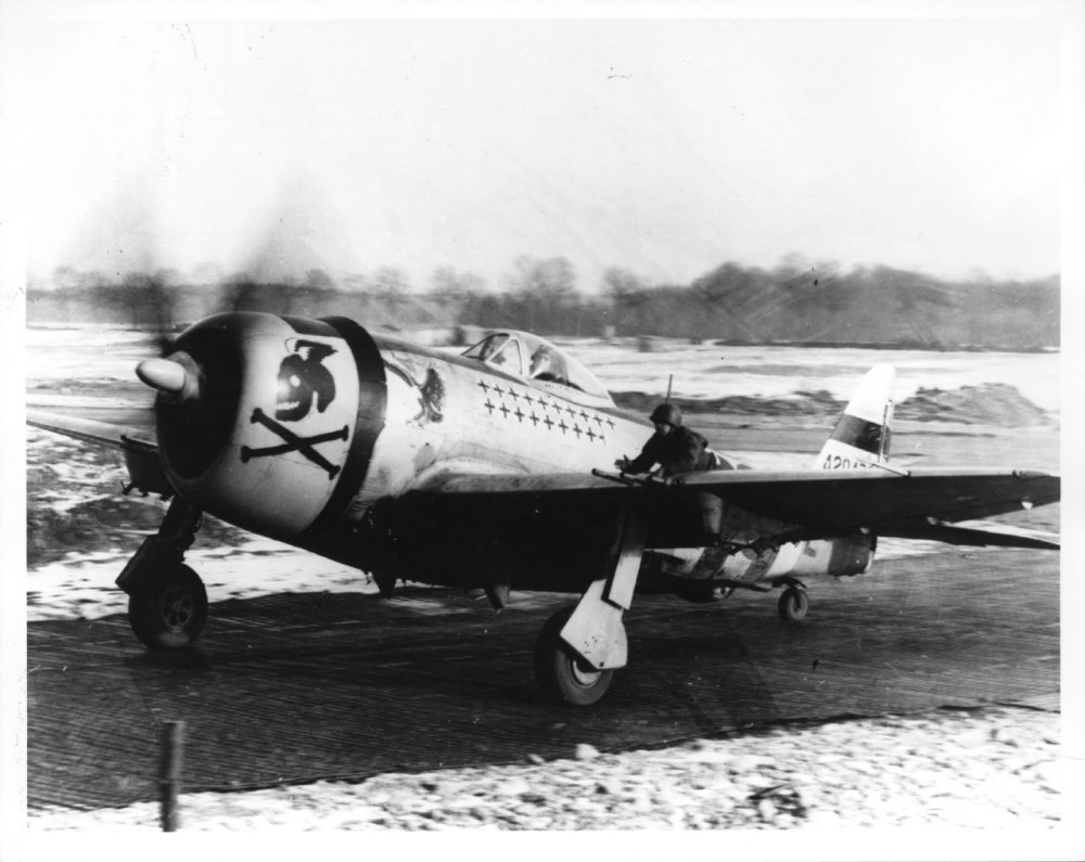 Capt Bud Mahurin 56th Fighter Group in P-47D Thunderbolt, England 1944 единственный американский ас, сбивавший как самолёты Люфтваффе, так и японские.Официально ему засчитана 21 победа за 2-ю Мировую Войну