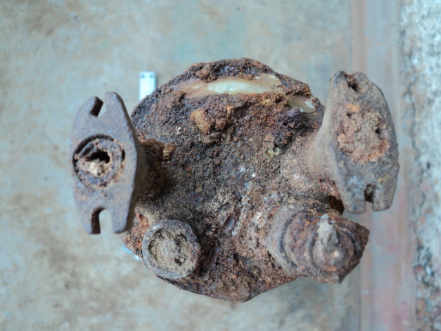 Измышляю: Если предположить, что это какой-то гидроакустический излучатель, то становится логичным наличие патрубков входа/выхода жидкости, охлаждающей обмотку, выводов электрических проводов её питания, и специфическая форма излучающей поверхности. Применяться могло в гидроакустике (z.b. эхолот) или в каком-нибудь кавитаторе. PS но вполне может оказаться и частью вибрационного насоса.
