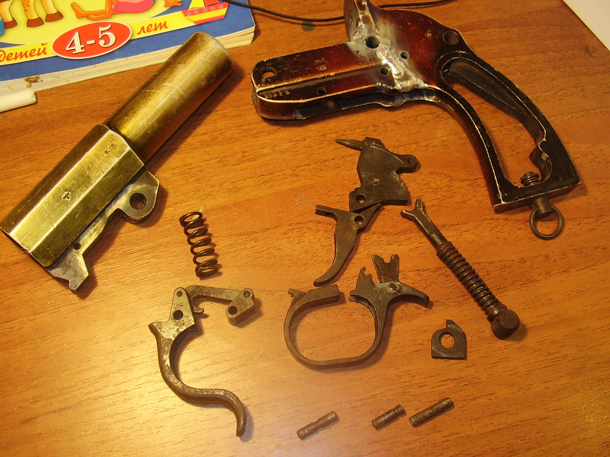 Сохран - чердак. Не копаная. На одном номере. Курицы - в наличии. Коррозии аллюминия нет вообще. Ствол - в идеале. Стальные детали в родном воронении, были с незначительными точками ржавчины, отчищены в масле. Комплект - на фото. Рабочая, стрелял с нее три раза. Была куплена уже треснувшей. Рукоятка заварена оргонной сваркой с предварительным нагревом детали. Отпущена 4 часа в духовке. Если делать для полки - можно убрать наплывы сварки. Если использовать по назначению - то лучше не убирать. Хотелка - 1 900 грн. Причина продажи - кредит. Местонахождение - Запорожье. Больше фото: http://youri-youri.io.ua/album598619 067-450-74-4два, Юрий.