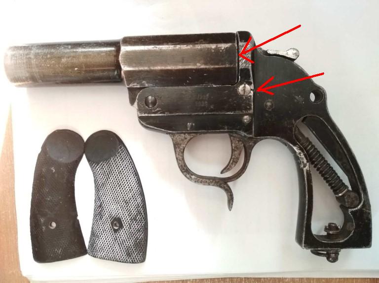 Доброго. Стрелочками указал места к которым есть вопросы... Ствол плотно прилегает к казенной части? Люфт есть? Там где винт... трещина в корпусе? Левая накладка в чем? Ключ крепления на накладках живые, не обломаны?