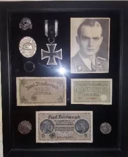 Продаются деревянные черного матового цвета рамки со стеклом, для оформление коллекции предметов старины,макетов оружия,нарукавных знаков различия,наград и.т.д.т.п..Рамки разных размеров между стеклом и задней стенкой толщина 2 см..Задняя стенка рамки по желанию заказчика может быть проклеена бархатом разных цветовых гам например:синий, темно-синий, черный, красный, вишневый, серый, темно зеленый, мешковина.Возможна изготовление паспарту разных цветов.Рамки как на мой взгляд идеально подходят для оформления в них предметов 3-рейха,войск "СС"," СД","Гестапо",РККА.Ниже примеры оформления.Цена 230грв. .