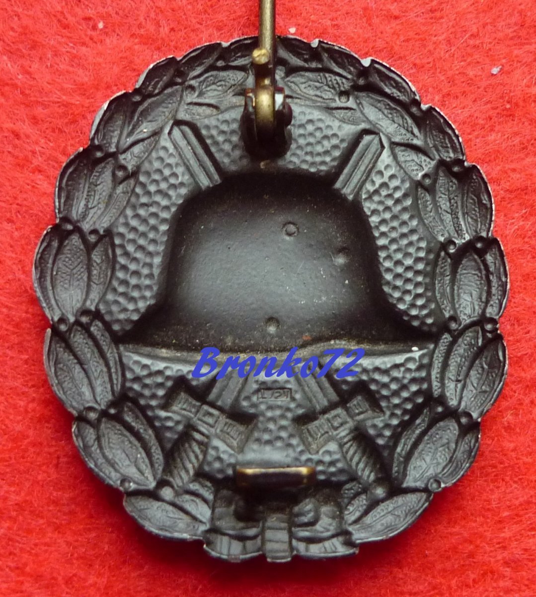 Литературы по ранениям ПМВ не много. Я отталкивался от каталога Константина Николаева. Да, с такой фурнитурой были знаки Форстера. И они приведены в каталоге. Они полностью соответствуют приведенному Вами знаку. Но, как сказано они все были маркированными. И, как мне кажется имеют отличие в шагрени от обсуждаемого в теме знака. Отличается и игла. Прорисовку жилок листьев я не могу увидеть. На знаке нанесен толстый слой краски. Поэтому я сегодня написал Константину. Вот его ответ: Приветствую Алексей! Какое-то странное впечатление знак производит. Очень похоже на перекрас. Игла вроде "тонковатая" какая-то. Добавлю фото с каталога.
