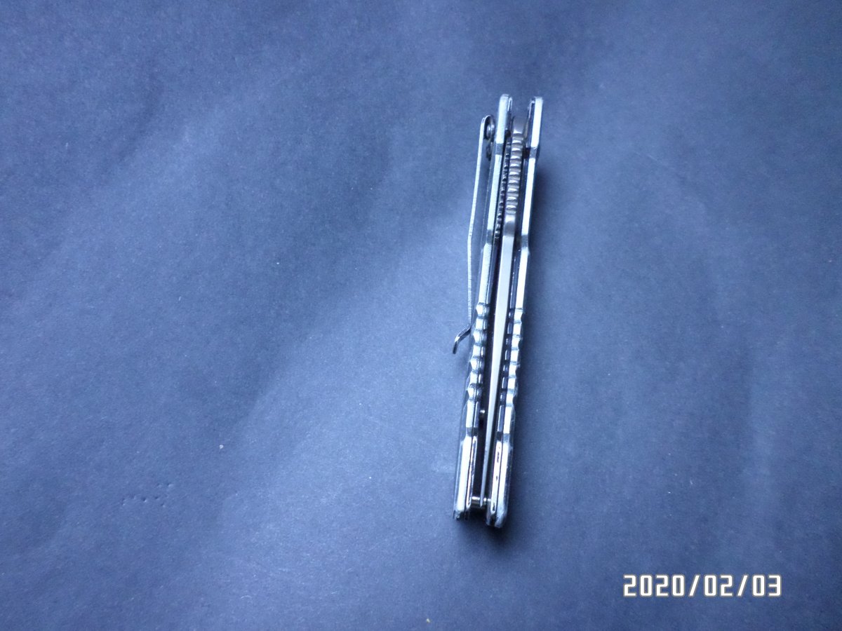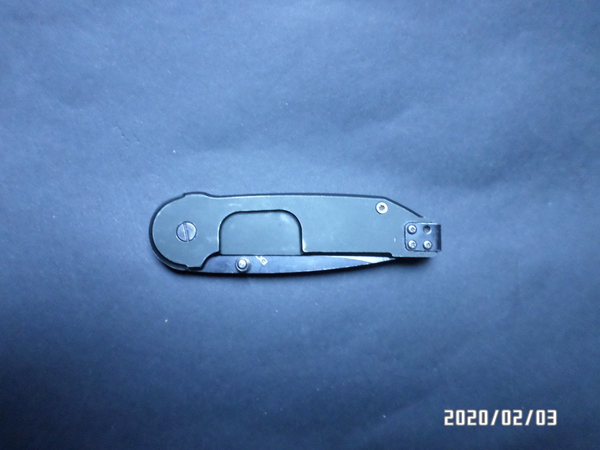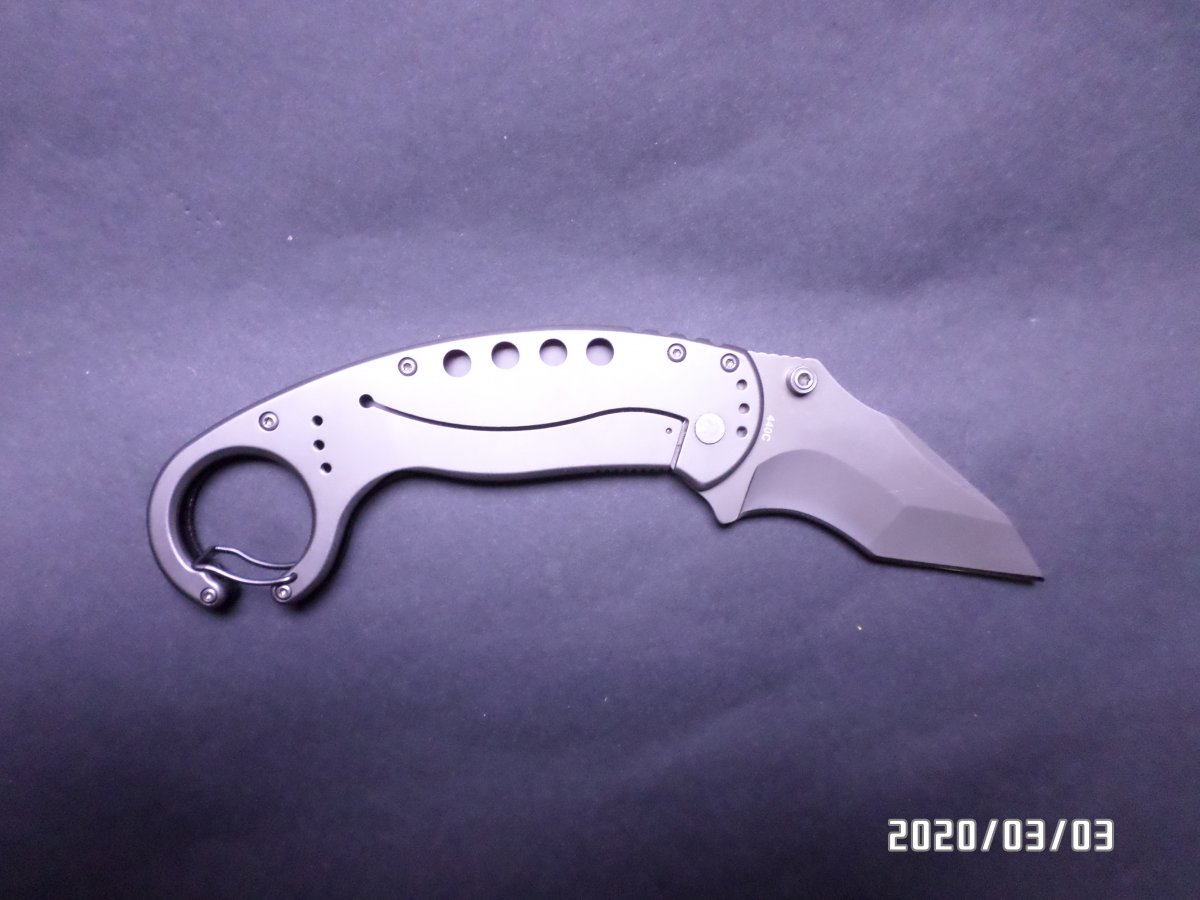 Заточка свежая, пружина щелкает как пушка, есть питинг на клинке и деформация на накладке (на фото).