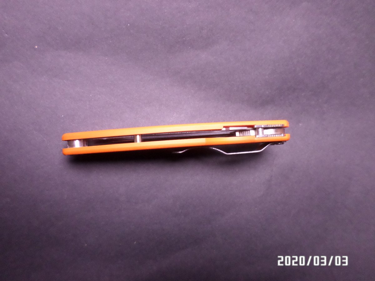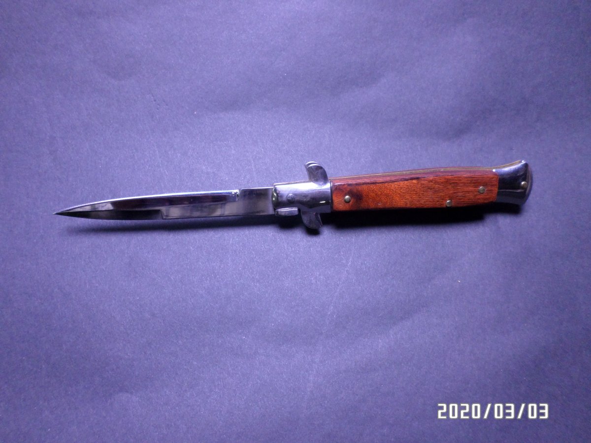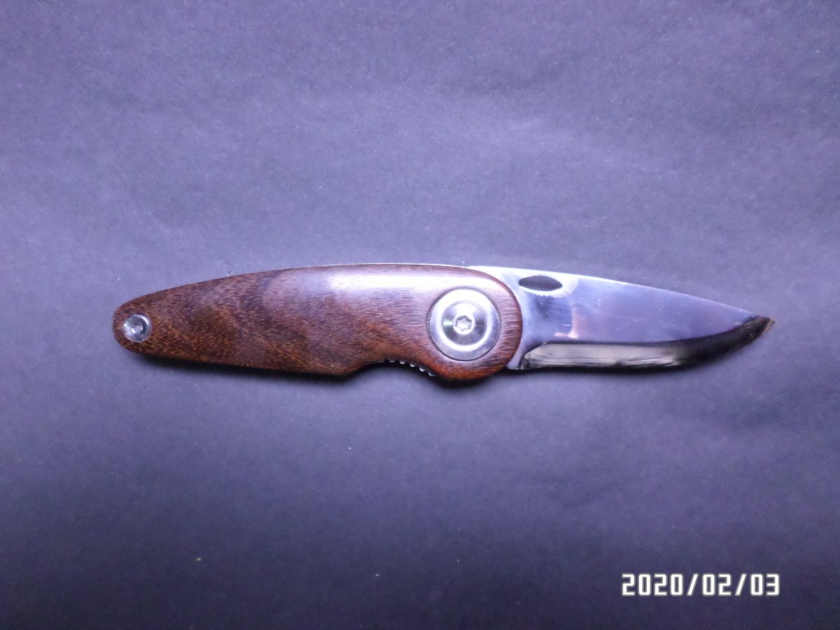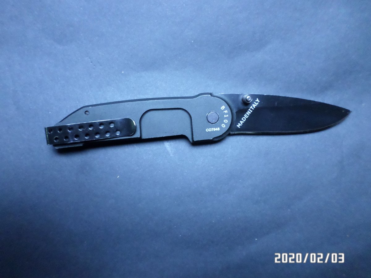 Заточка свежая, пружина щелкает как пушка, есть питинг на клинке и деформация на накладке (на фото).