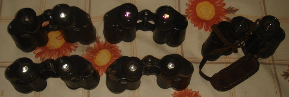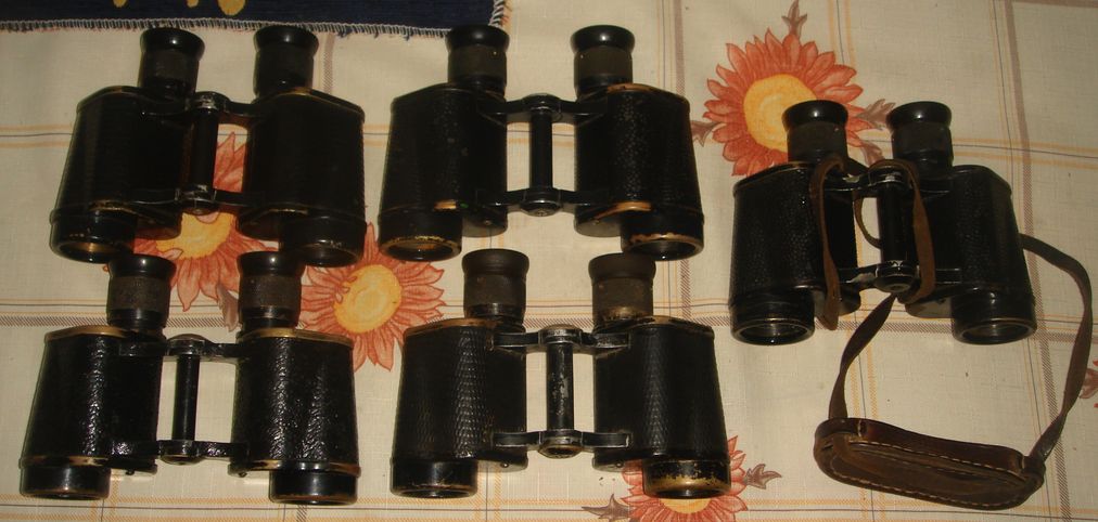 Пять 6-кратных армейских бинокля ( оптика в хорошем состоянии, повреждений нет,
