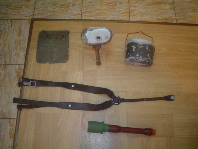 Ответ: Разное... Итак фляга африка 100$. Теперь еще немного... котелки гансовские побывавшие в боях и выдившие виды пара 60 грн. Есть дырки и вмятины. Ипритка натура. 75 грн. ткань крепкая . Игрек (нужно доделать лямки на D-образные кольца. а так все вроде. 150 грн. (новодел). И макет калатухи для взрыва .т.е. середина банки сделана из тонкого картона низ открывается для закладки взрыв пакета. 40 грн.