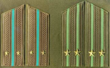 Например Нашивные погоны обр. 1958 г. с полем из вискозного галуна к повседневному обмундированию офицеров пограничных войск КГБ при СМ СССР.