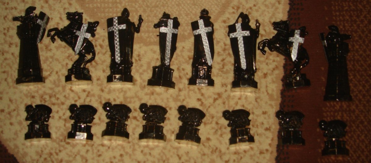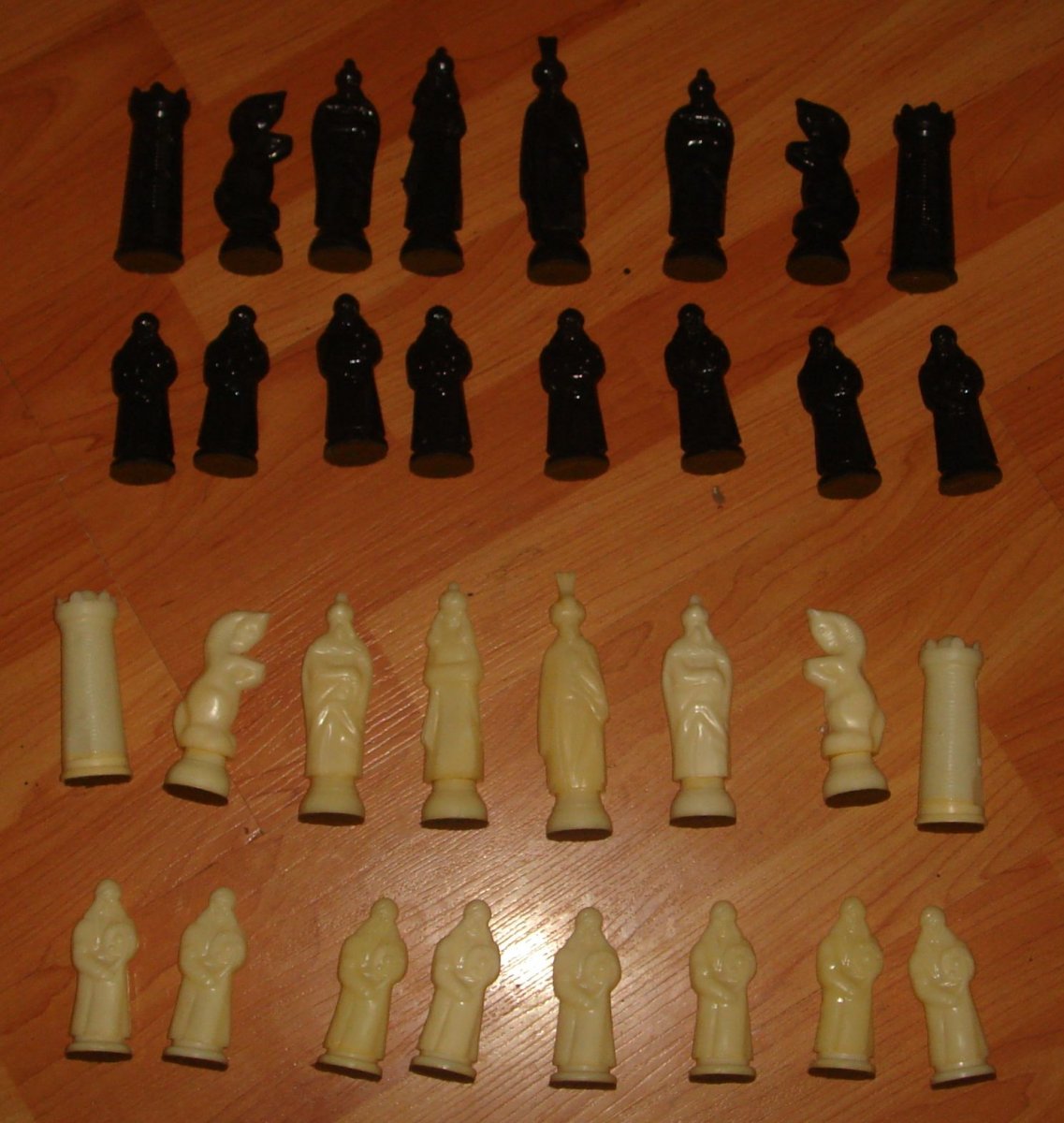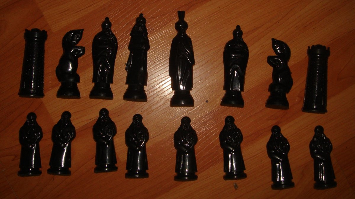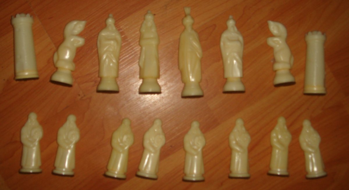 Шахматные фигуры "Восточные". Набор шахматных фигур без доски. Материал - пластмасса. Состояние - б.у.,по фото. Производство СССР. Полный комплект (32 фигуры). Цена 450 грн.