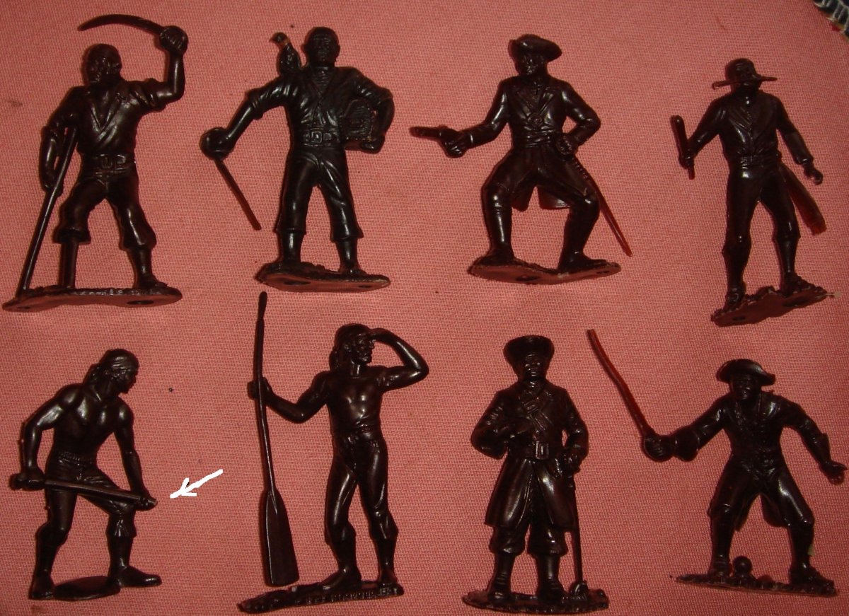 Набор советских солдатиков "Пираты". Полный комплект ( 8 шт.). Материал - пластмасса. В очень хорошем состоянии,повреждение лишь у одной фигуры (отломана лопата, указал на фото). Цена 250 грн.