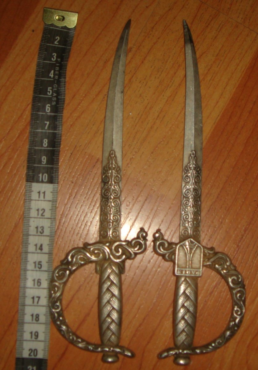 Французские ножи для конвертов\бумаг, стилизованные под сабли. Посеребренные. В хорошем состоянии, цена указана за пару. (400 грн.).