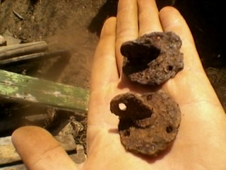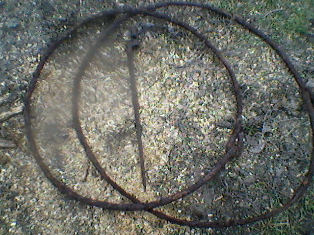Кольца из толстой проволоки . Как вариант- самодельние обручи от деревянной бочки , то что они как видно на фото разных диаметров как раз и наводит на эту мысль.
