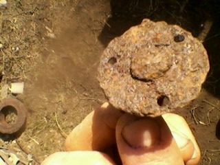 Собственно вот такой металлолом,возможно кто знает для чего предназначался:)Кольца из толстой проволоки,остатки штыка ВМ для масштаба.Непонятная "заслонка".