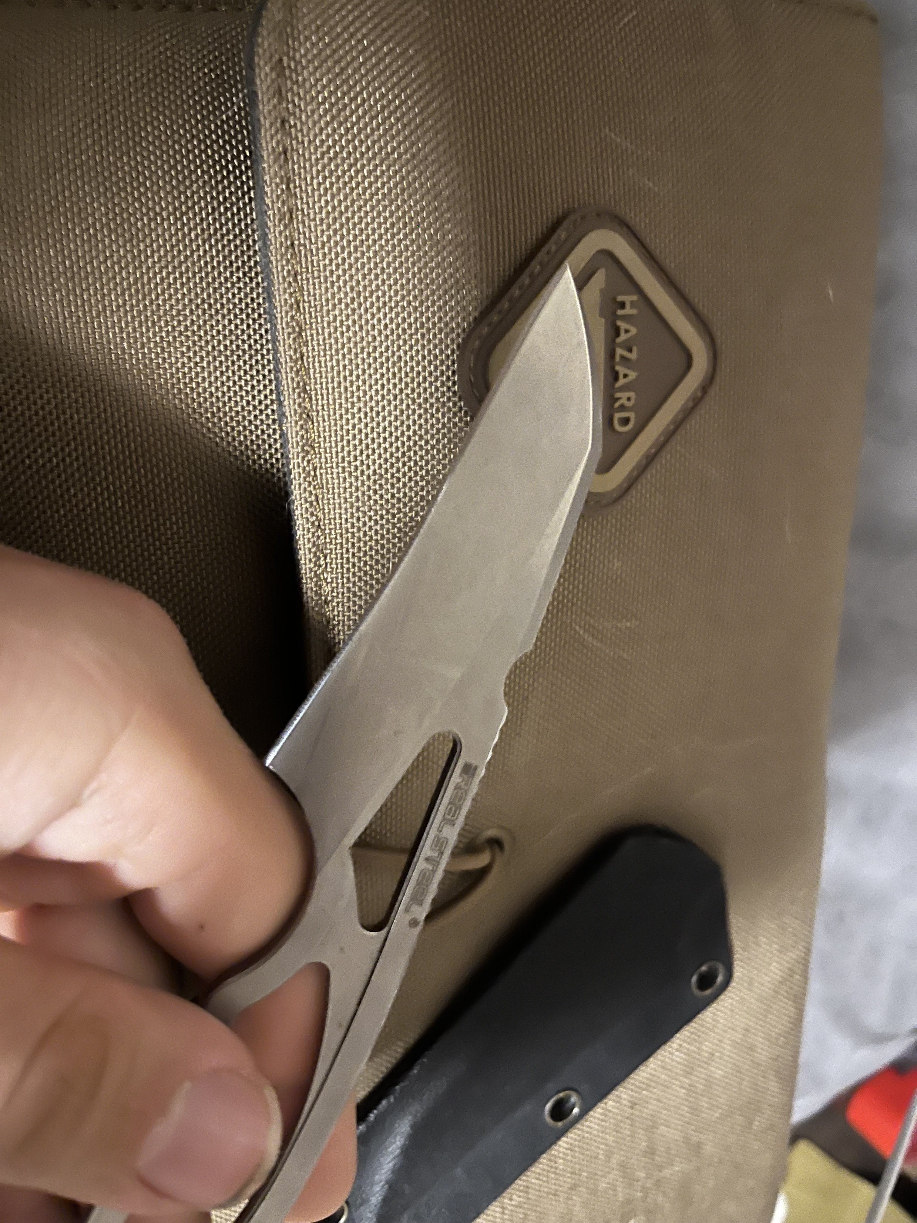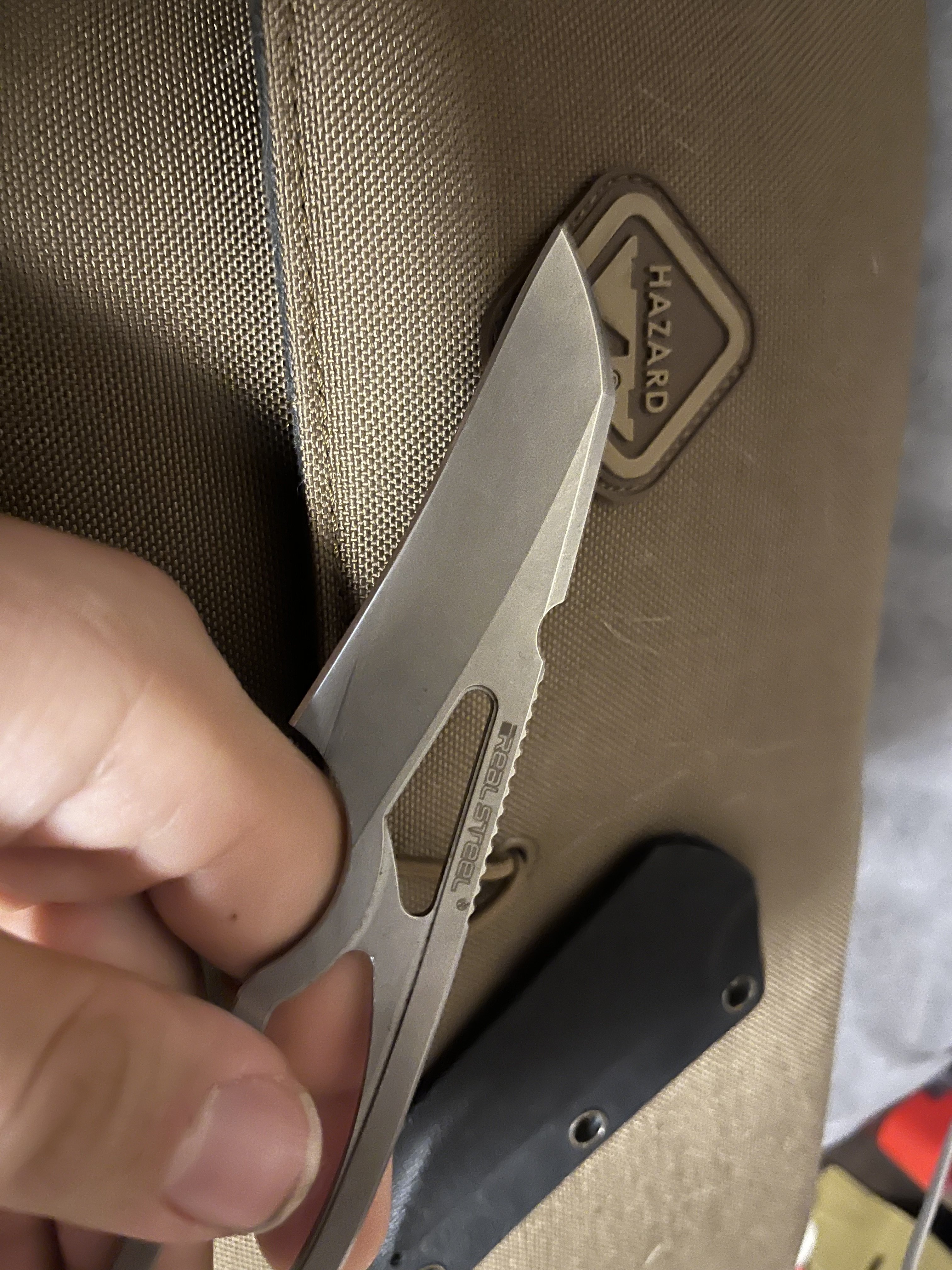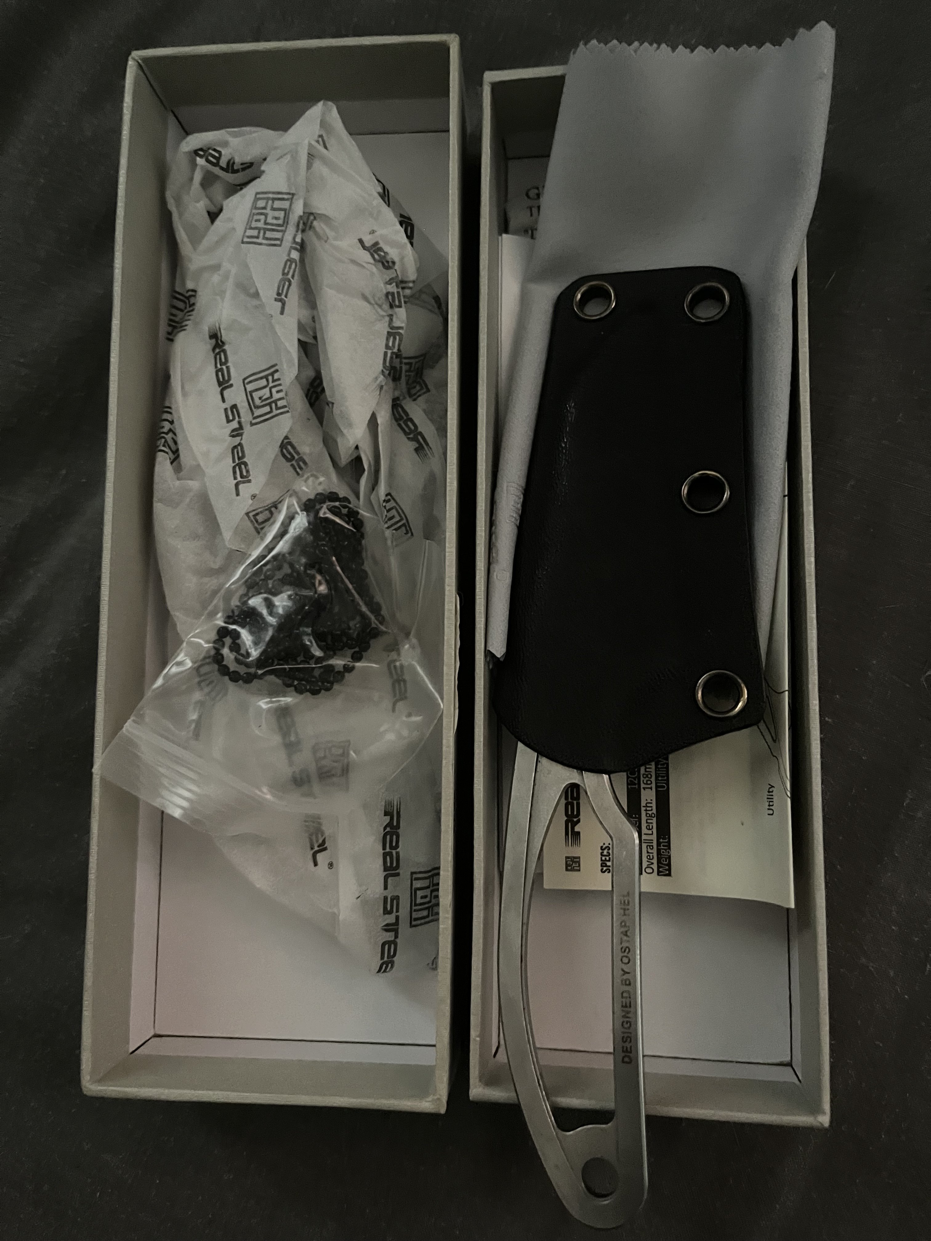 Продам real steel alieneck Є сліди від кайдексних піхв на клинку,та трохи бруду Повний комплект • загальна довжина 168 mm • клинок 77 mm • руківʼя 91 mm • товщина 3,5 mm • вага 50 g • сталь Sandvik 12C27 (56-58HRC)