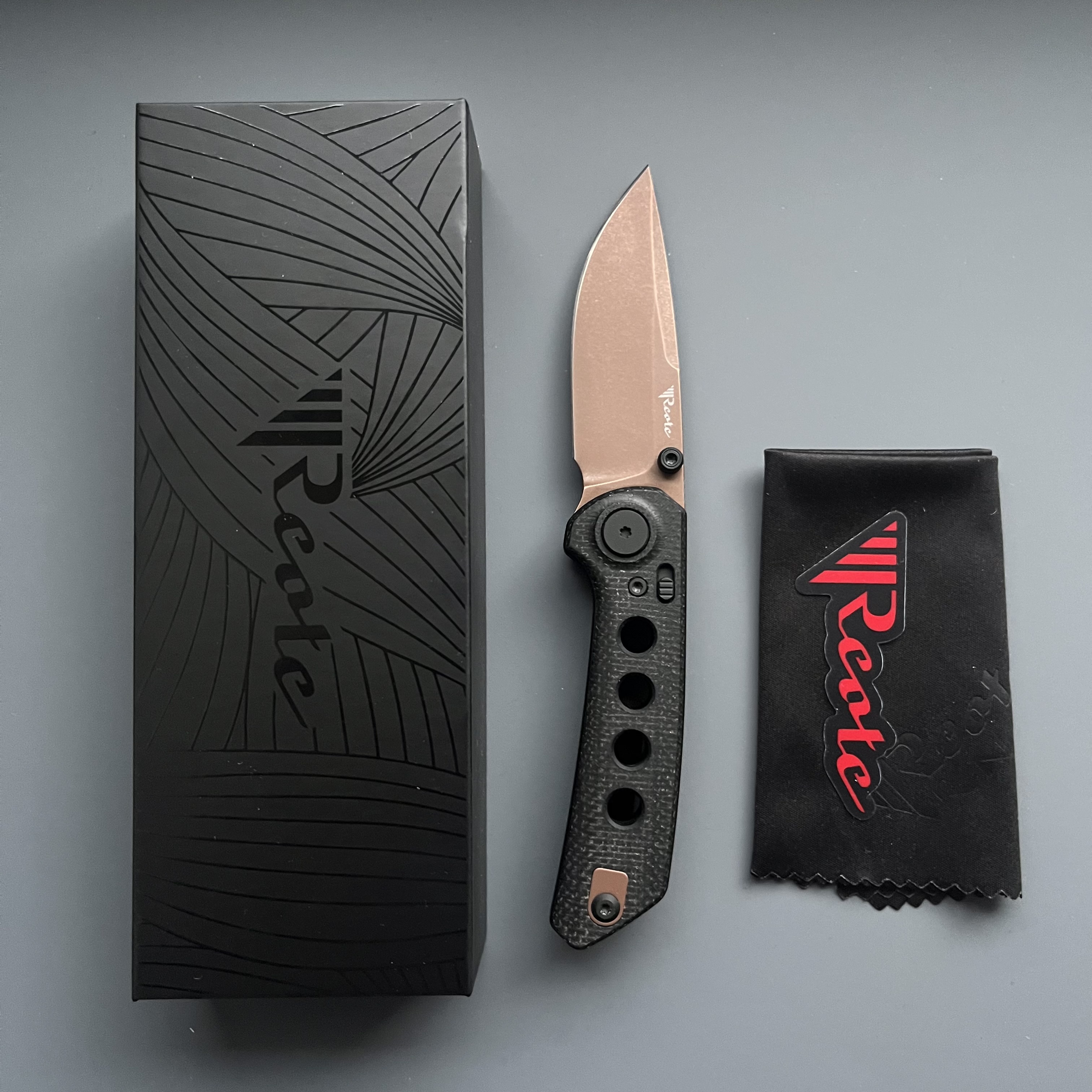 Вітаю спільноту! В продажу новинка: ⭐️Reate PL-XT⭐️ Ніж цікавий реалізацією замка: конструктивно це Button lock, проте кнопка не окрема, а інтегрована у вісьовий вузол. Накладки з чорної мікарти контрастують з елементами кольору бронз - топове поєднання кольорів. Ніж зручно лягає в руку та має відмінний фіджет-фактор (відео) Кліпсу можна переставити під шульгу, є запобіжник для блокування клинка. - Загальна довжина: 175 мм - Довжина клинка: 76 мм - Товщина в обусі: 4 мм - Сталь на клинку: Nitro V - Фініш клинка: PVD - Руківʼя: micarta + G10 - Вага: 122 г Ціна ⭐️6300₴⭐️ за новий ніж