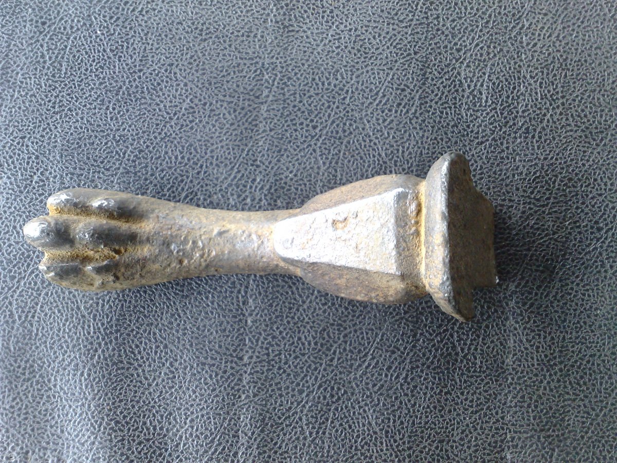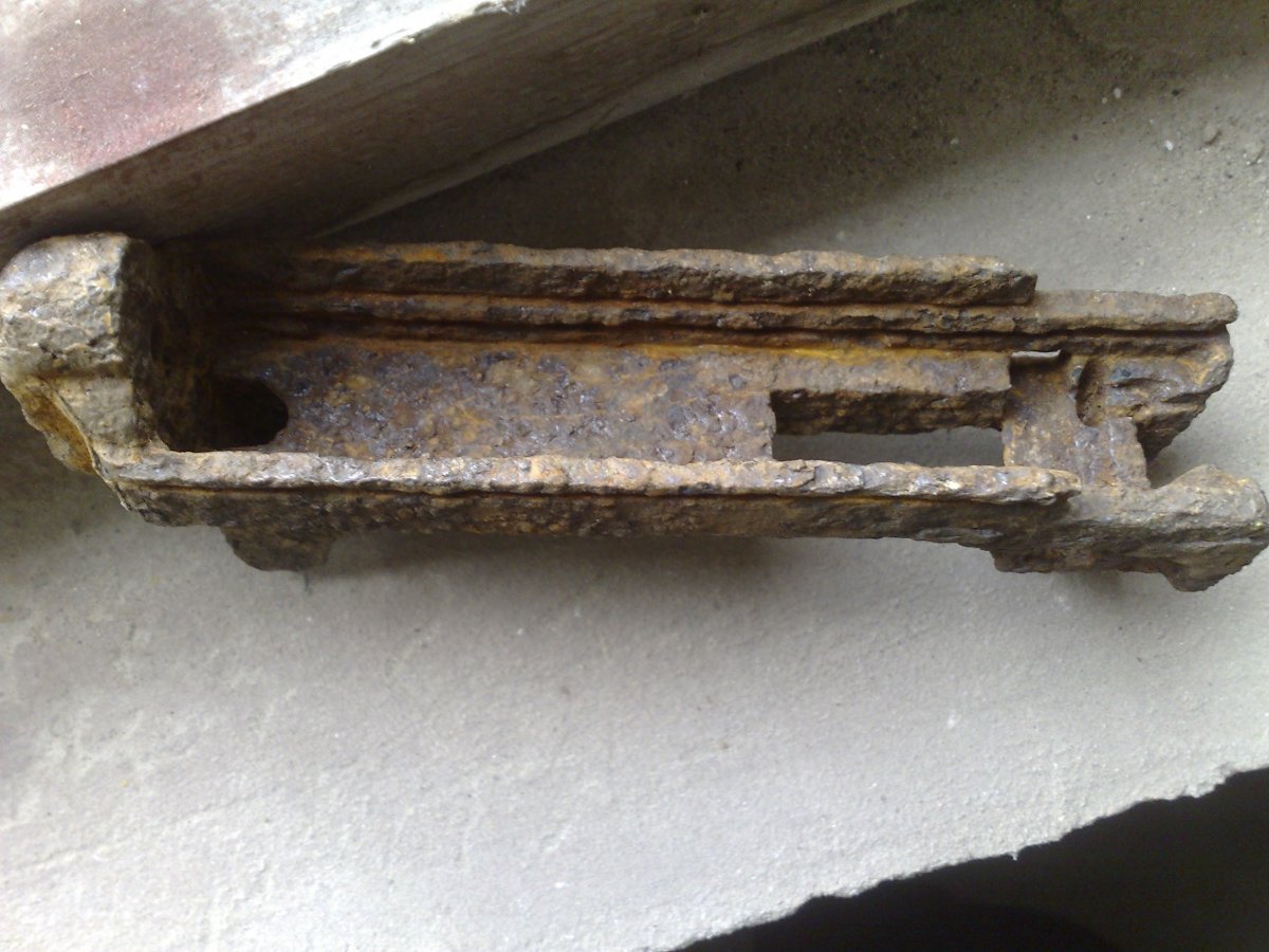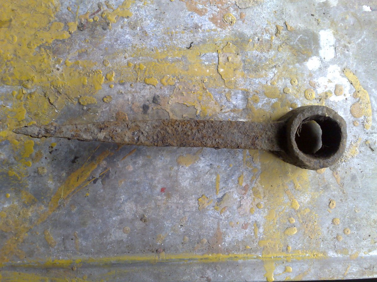 Знайшлась така лопатка, думав дитяча - але товщина стінки щось за товста. Ще колесо (від воза) чи від пушки може? діаметр 90см. і котєлок що з шапкою з верху знайдений.