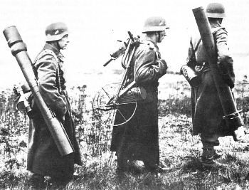 У Васильченко в "Фаустниках в бою" эти фото подписаны как "Хаммер" 10,5cm , вес снаряда 4,5кг, длина снаряда 725мм, вес метательного заряда 1,2кг, начальная скор. 540м/с, бронепробиваемость 160мм.