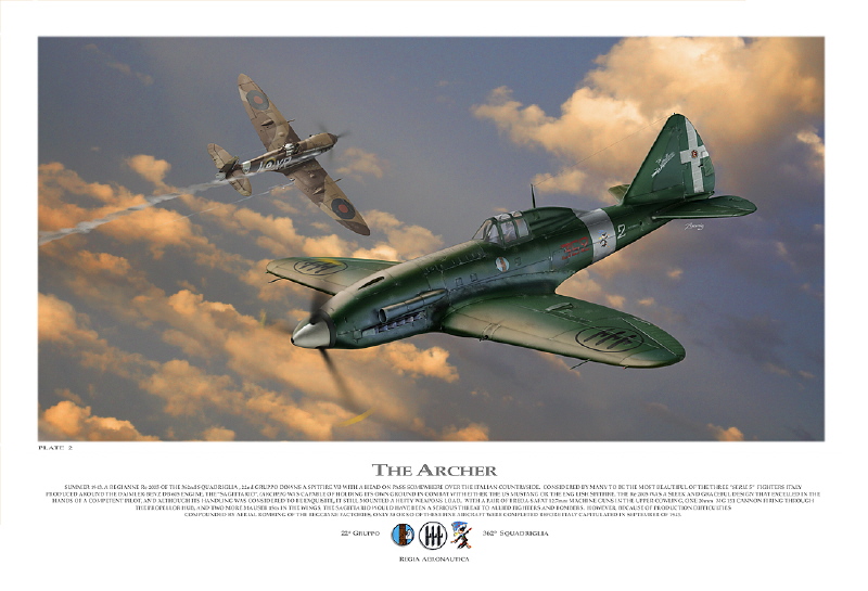 Вышла вот такая книга. Издательство Москва “Яуза”, “Эксмо” 2012, 127 стр. Много фотографий, разделы о войне итальянских ВВС в Восточной и Северной Африке, Испании, на Балканах, есть о участии Реджиа Аэронаутика в кампании в Росси, итальянские ВВС на стороне антигитлеровской каолиции и итальнские ВВС Итальянской социальной республики. Есть немного и о самолете, который на предыдущей фотографии. Это Re 2005 фирмы Реджиане. Развитие Re 2001, но уже под немецкий мотор DB 603 и сильное вооружение. Летно-тактические характеристики самолета Re 2005 Размах крыла, м…………………...…......11,00 Длина, м……………………………..........…8,73 Высота, м……………………………...........3,15 Площадь крыла, кв.м…………..……......20,40 Масса, кг Пустого самолета:…………………….......2600 Взлетная……………………………….........3574 Макс. Скорость, км/ч на выс.5950м…..628 Время набора выс. 6000м, мин,с……....5’30” Практический потолок, м……………......12000 Дальность полета, км………………….....1250 Вооружение: Три 20мм пушки MG 151/20 с боекомплектом по 200 патронов( одна в развале цилиндров, две в крыле вне плоскости вращения винта) Два синхронных 12,7 мм пулемета SAFAT над двигателем( боекомплект по 350 патронов). Из-за достаточно мощного вооружения самолет именовался Sagittario ( Саджиттарио-Стрелец). Единственной частью Реджиа Аэронаутика, успевшей получить Re 2005, стала 22-я отдельная группа, которая прибыла из России. В марте 1943г. ей передали прототип, а затем начались поставки предсерийных самолетов. До капитуляции успели передать 20 предсерийных “Саджиттарио”.